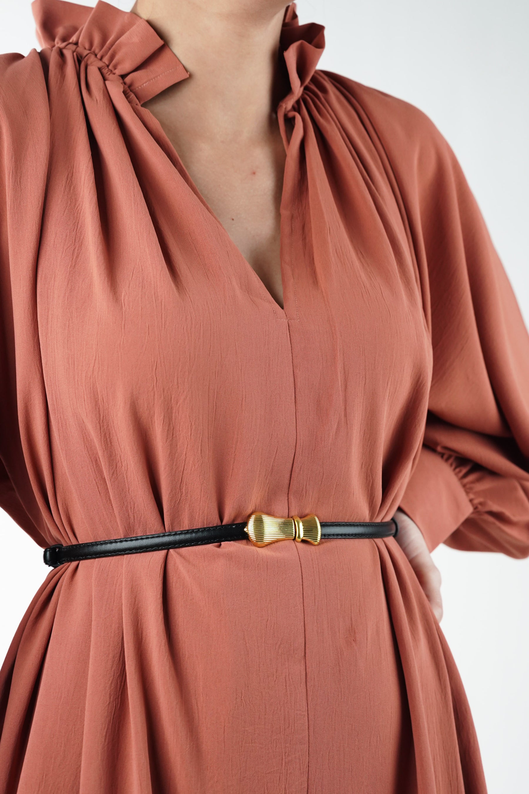 Maxi dresses are very cozy, but sometimes they seem shapeless, don't you think? Thin belts to wear with maxi dresses will add definition to your waistline without overwhelming the relaxed vibe of the dress. Depending on the style of the dress, you may wear a leather or fabric belt for long dress; in this case, either way, you create a balanced silhouette, and that breezy look does not go away. It is that small touch that makes all the difference.