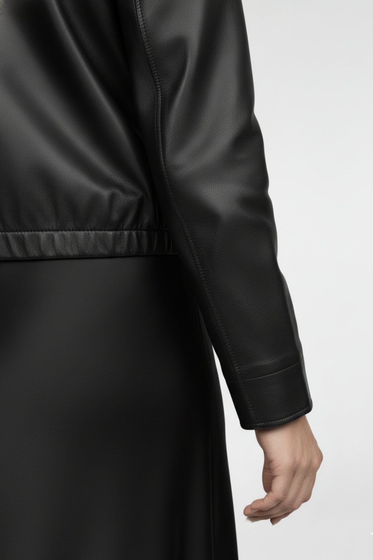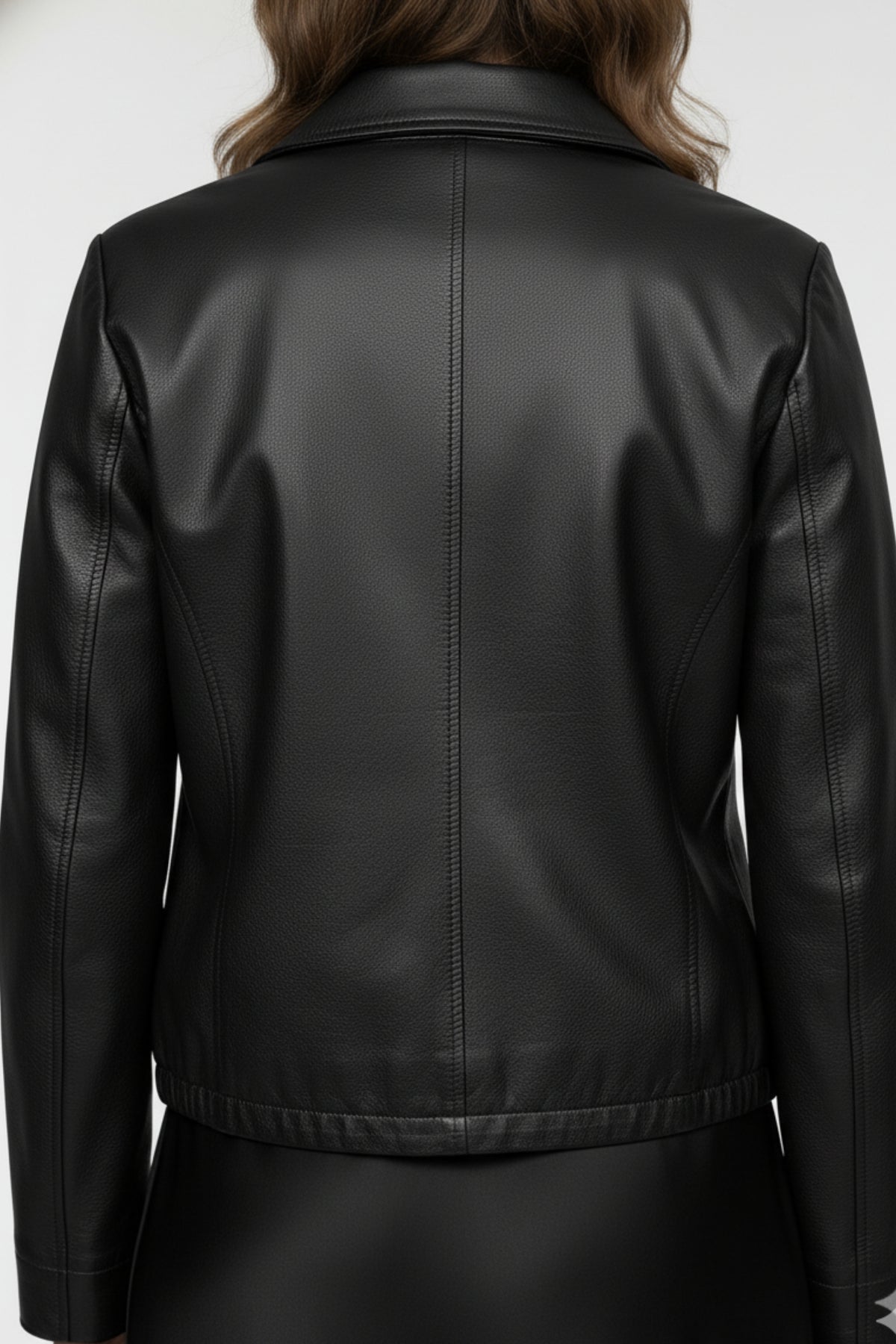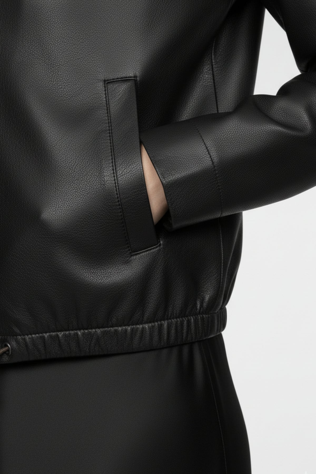 • Detail: Zippered Leather Jacket with adjustable drawstring hem