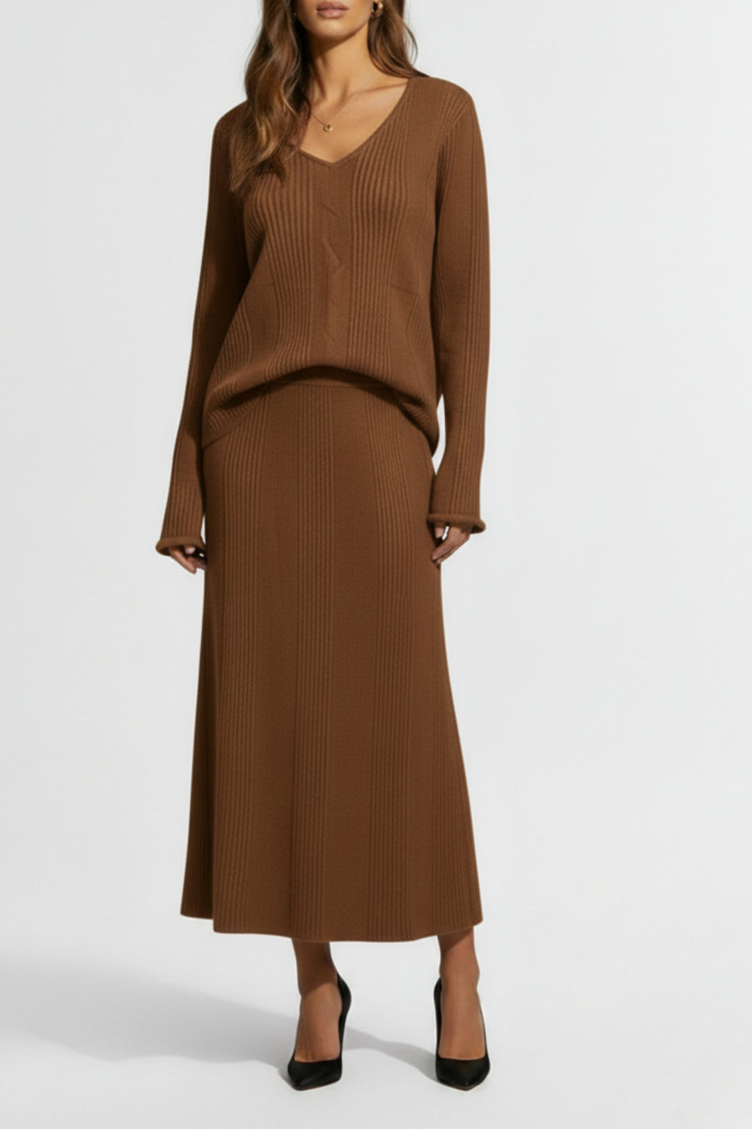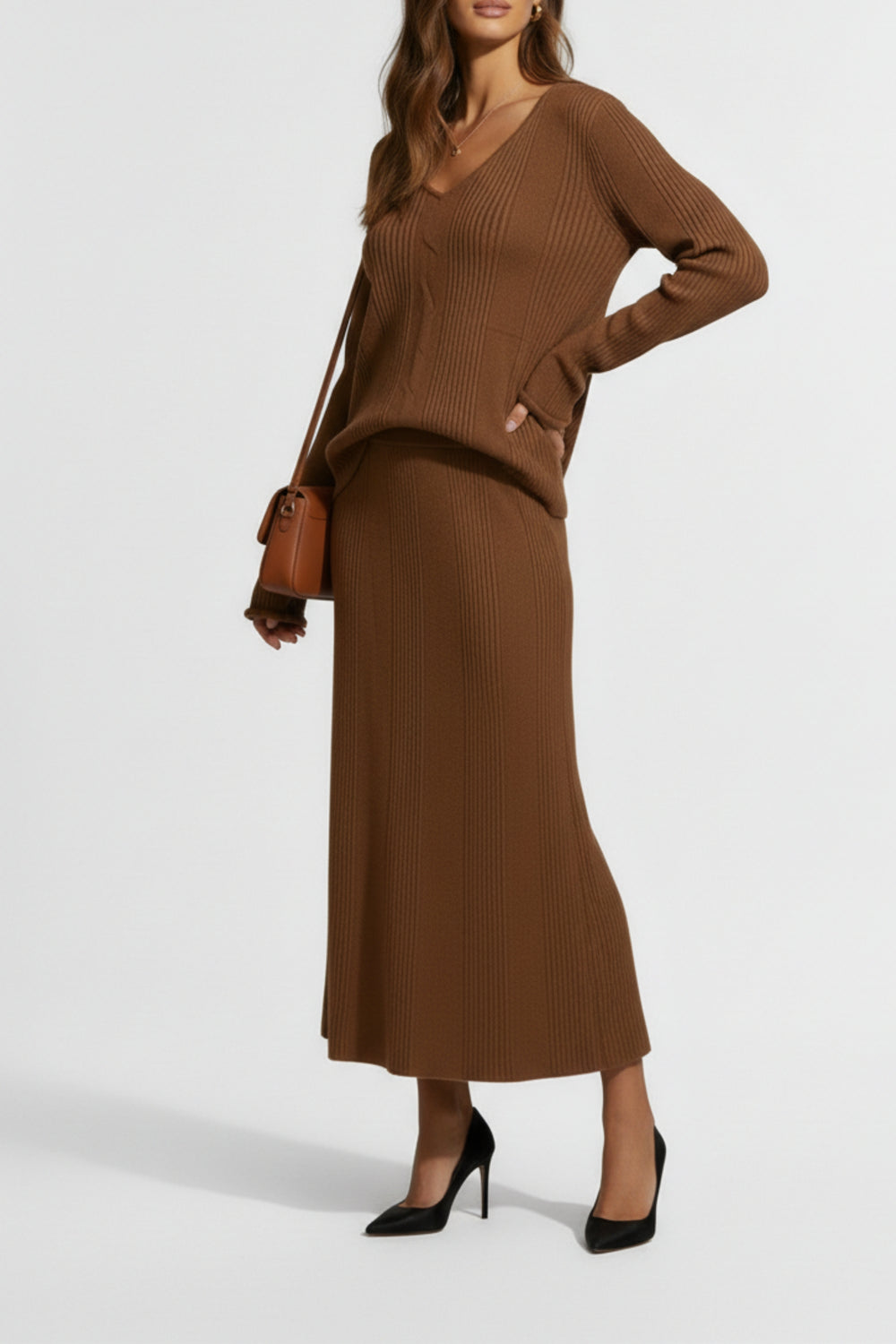 Style this 2 piece dress for women with accessories and heels that are subtle so they don’t overpower the cord set. These outfit sets suit well in neutral colors for the evergreen look or in bold colors for the times you want something extra.