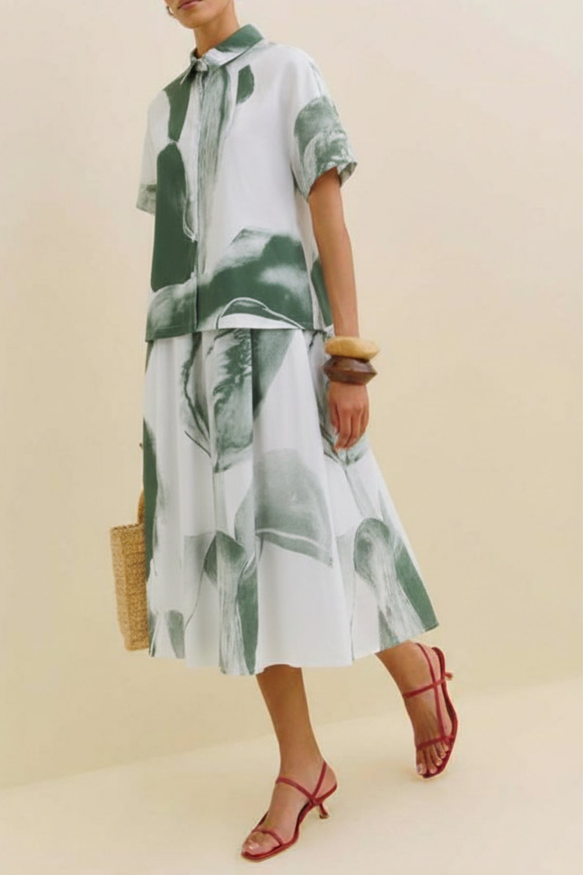 Swirls of marble meet soft cotton in our Marble Print Cotton Coord Set. It features an oversized green and white shirt that falls gracefully and has an elegant collar and button-down front. The coordinating skirt adds a touch of flow with its relaxed fit, stretchy waistband, and functional pockets. It’s an ideal choice for vacations, resort stays, or no-fuss casual dressing.