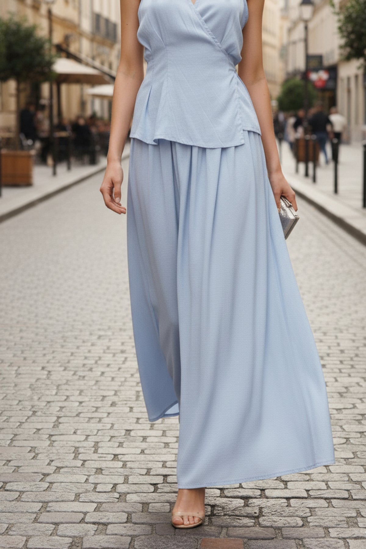 Chic, versatile, and effortlessly stylish — the Peri Blue Wrap Top & Skirt Co-ord Set is designed for modern elegance with a relaxed edge. Crafted in a soothing peri blue shade, this set features a lightweight wrap-style sleeveless top paired with a flowy midi skirt that drapes beautifully for all-day comfort.