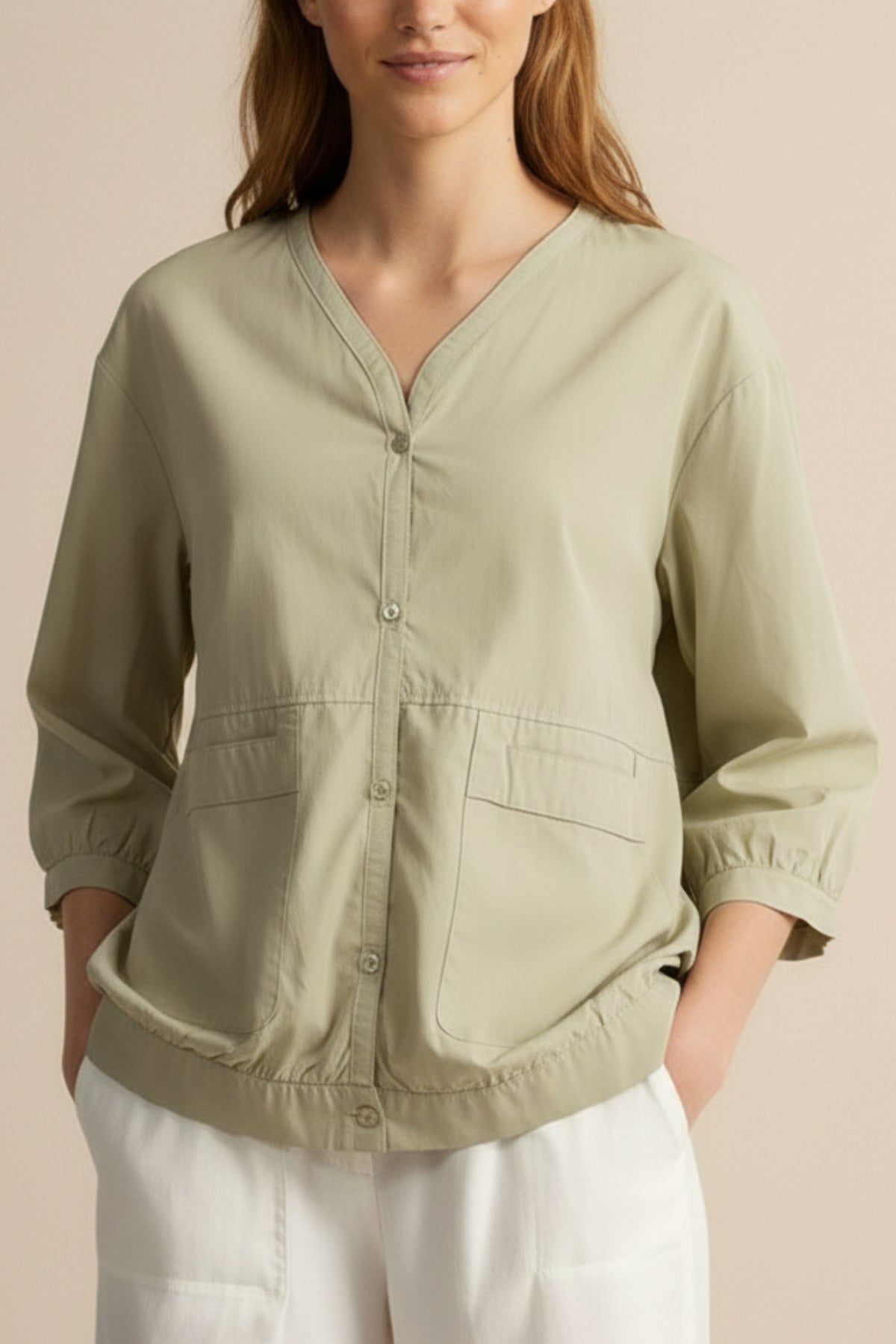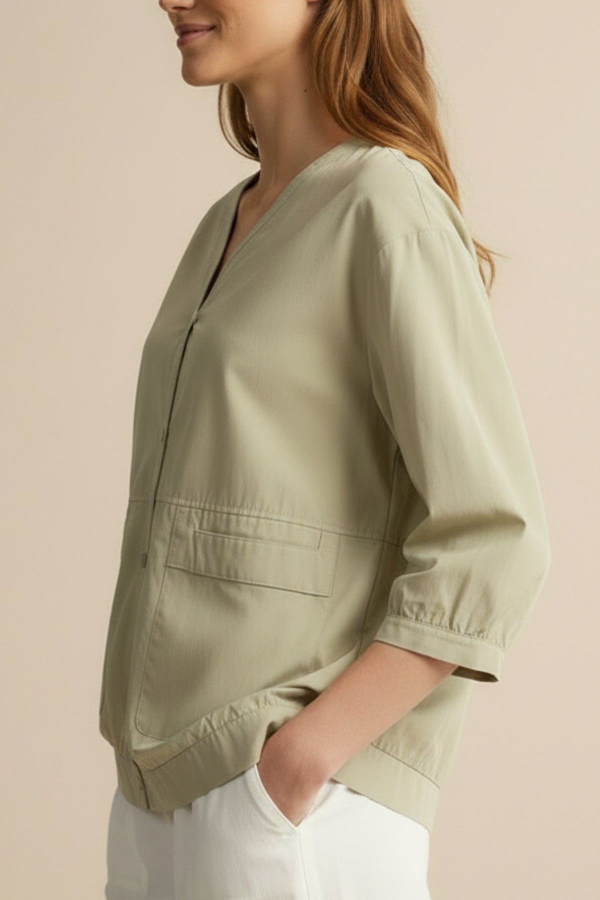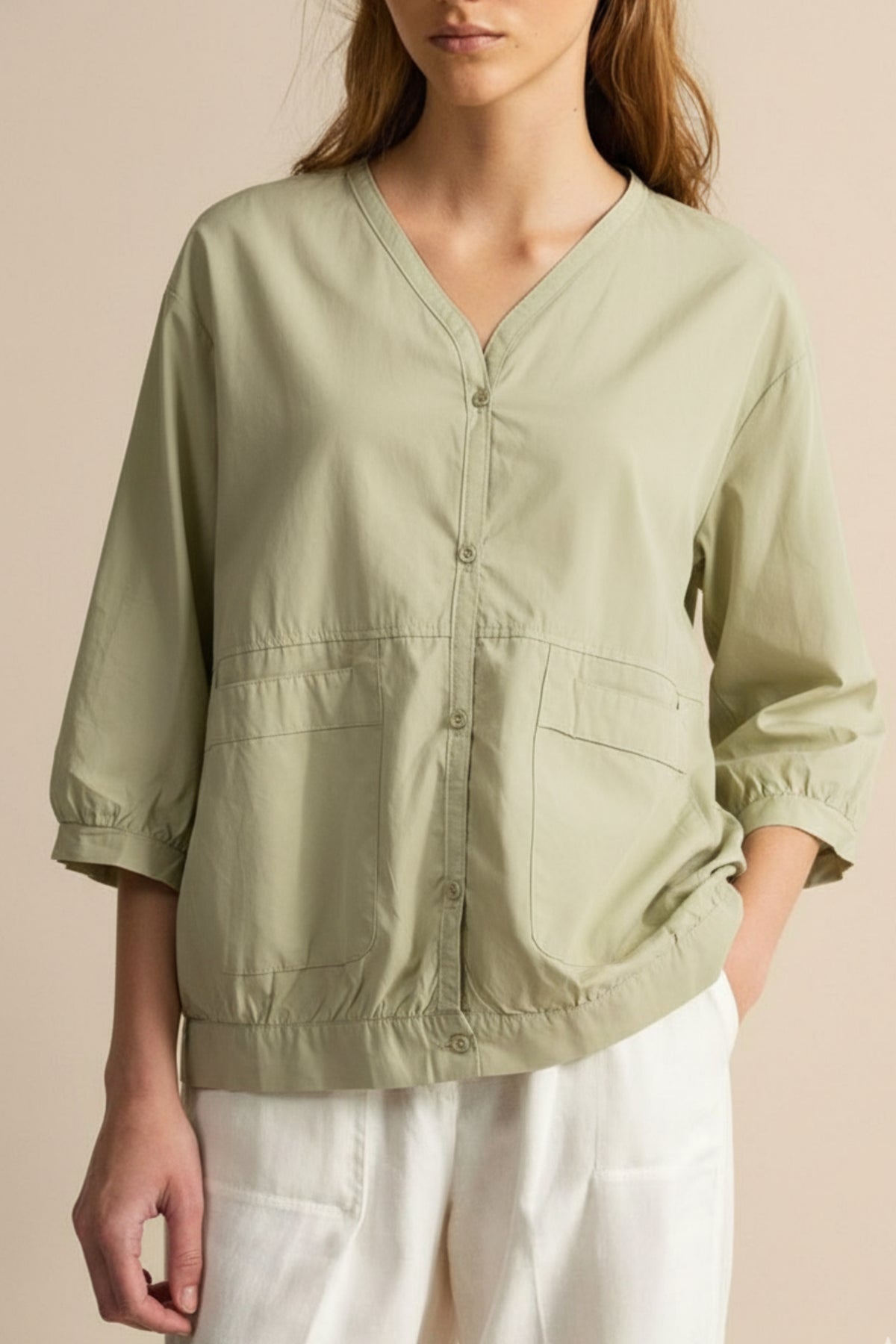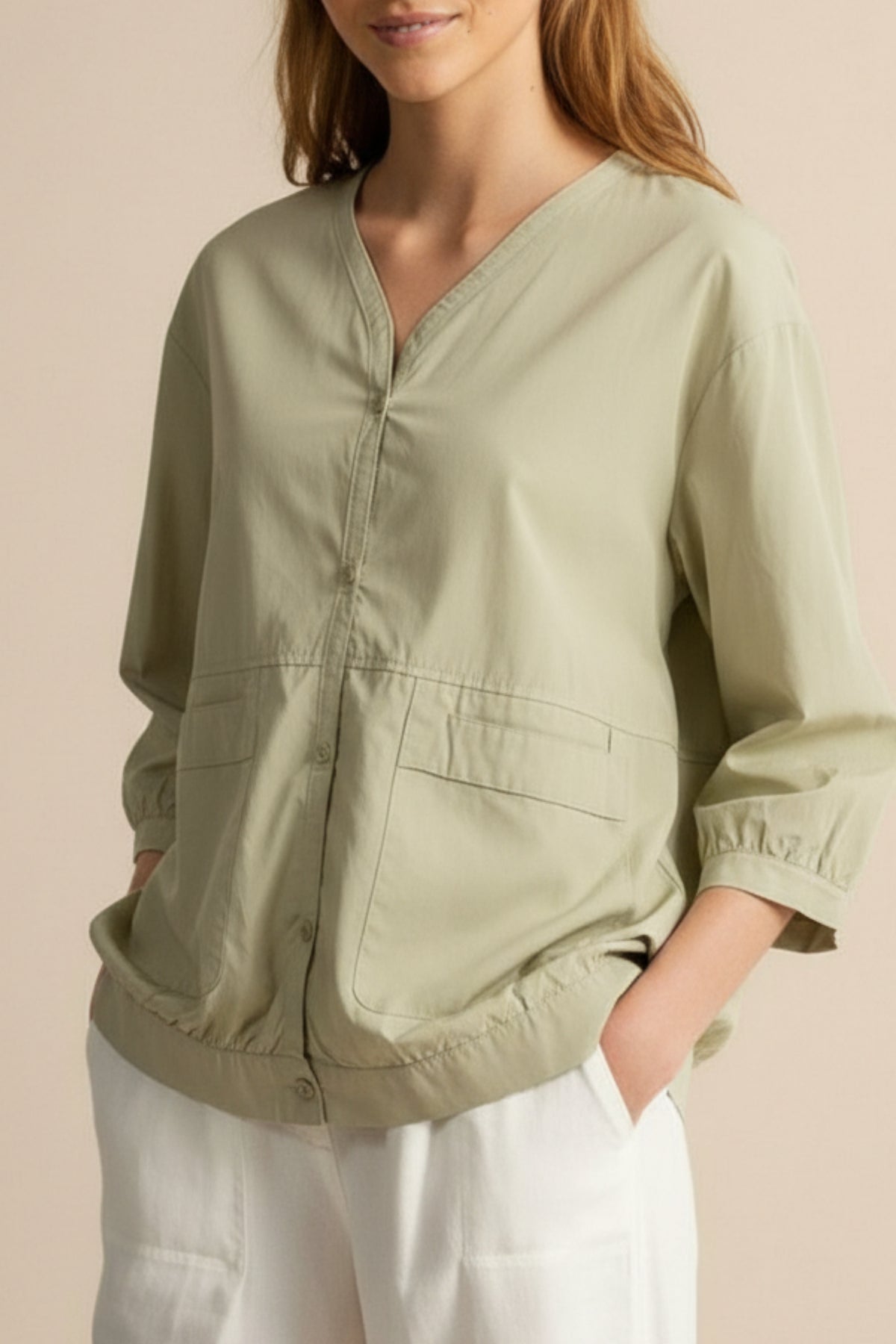 Sunny Breeze Oversized Shirt embodies both comfort and style. Its relaxed silhouette, V-neckline, drop shoulders, and front patch pockets fuse together seamlessly, creating an ensemble that exudes effortless chic for any occasion.