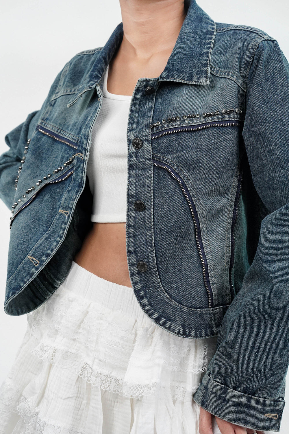 A: Cropped denim jackets pair beautifully with high-waisted skirts or jeans. They can also be layered over dresses for a trendy, chic look.