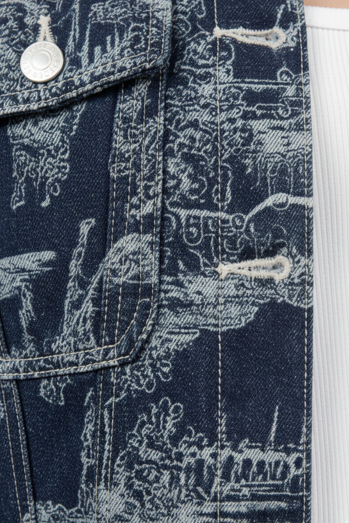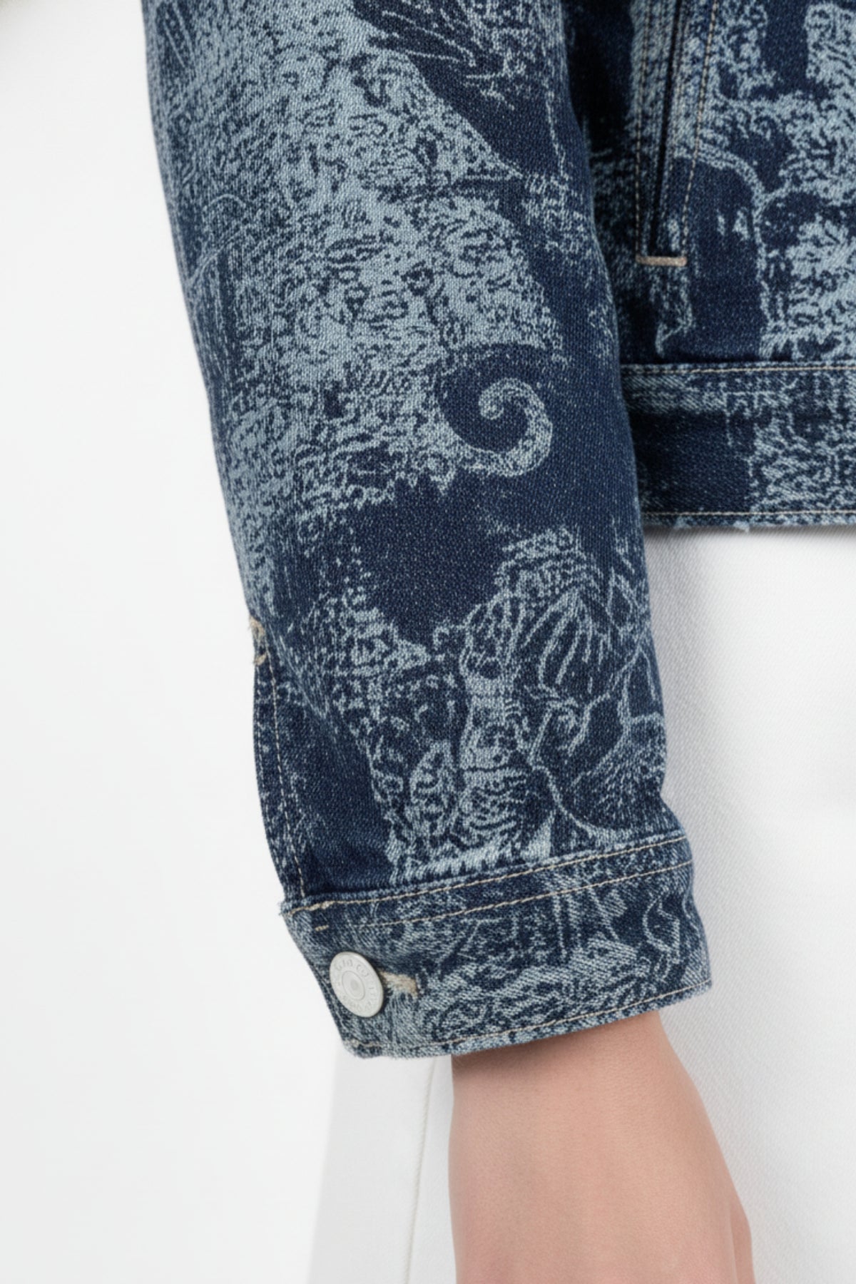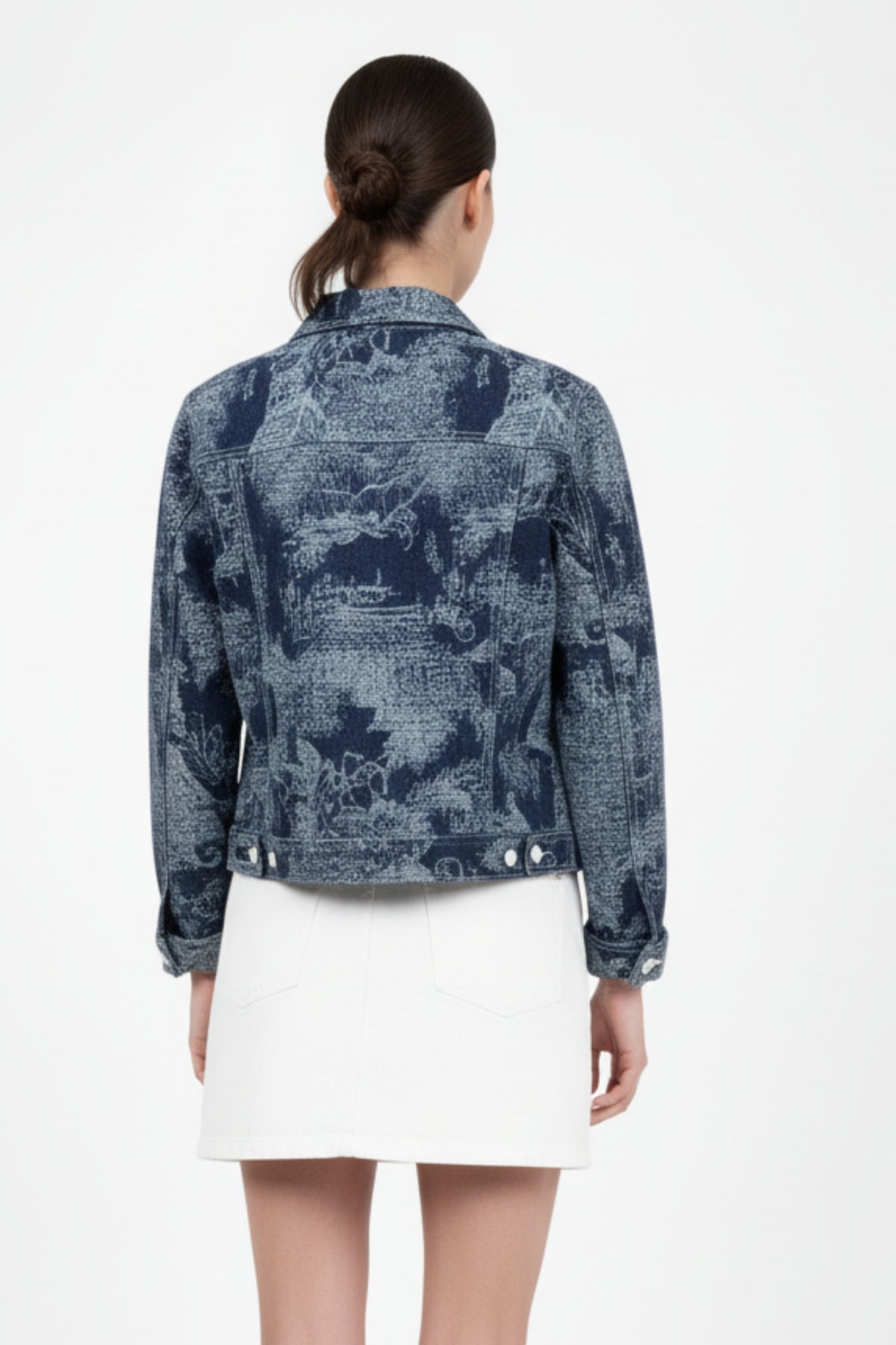 • Detail: Oversized Woven Denim Jacket with Classic Collar And Abstract Pattern
