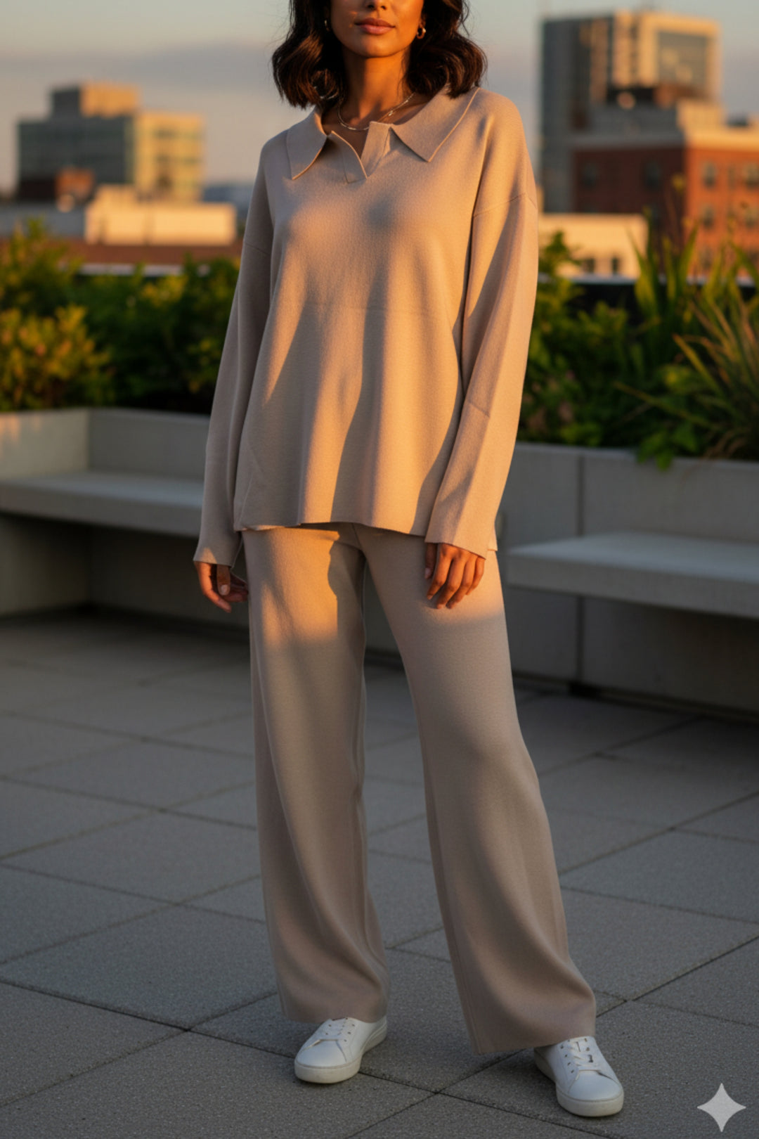 Cinnamon Pleated Knit Skirt Co-ord Set