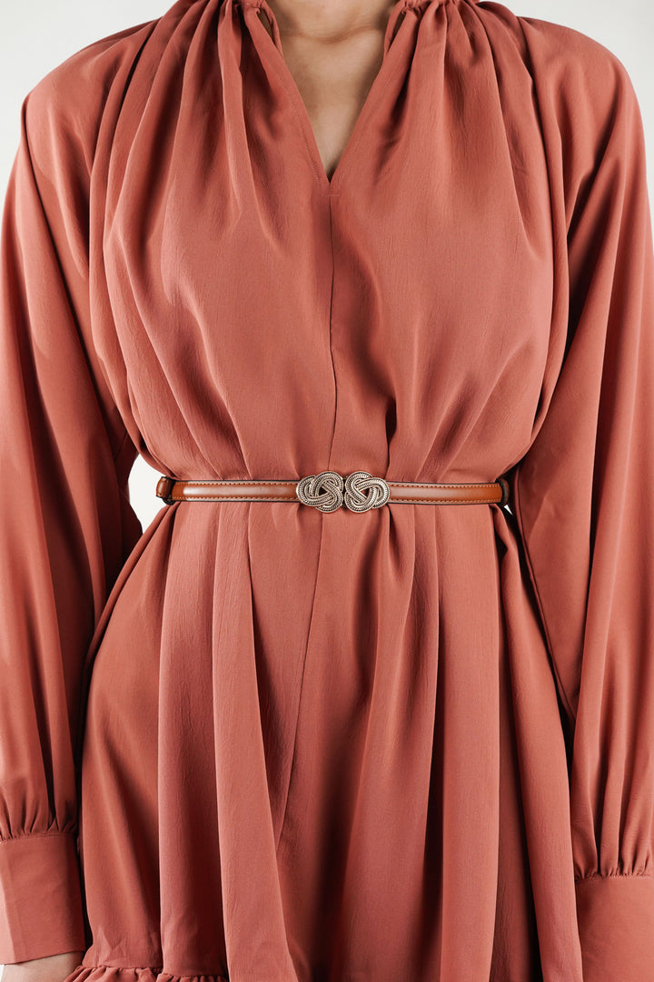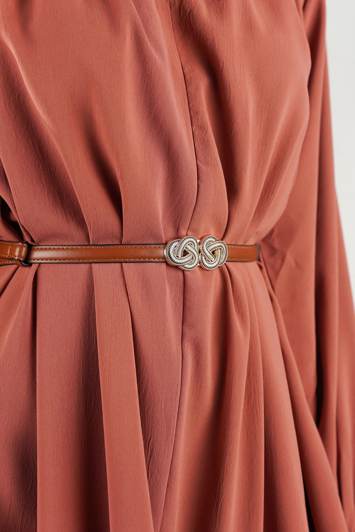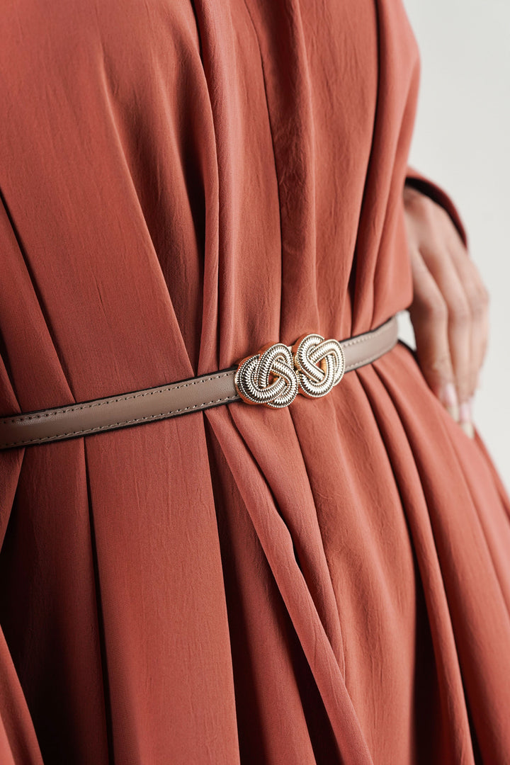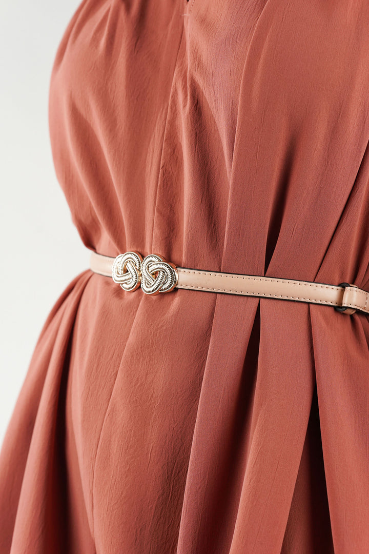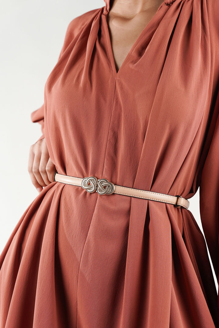Elegant Design Waist Belt with Extended Knot Buckle Lines