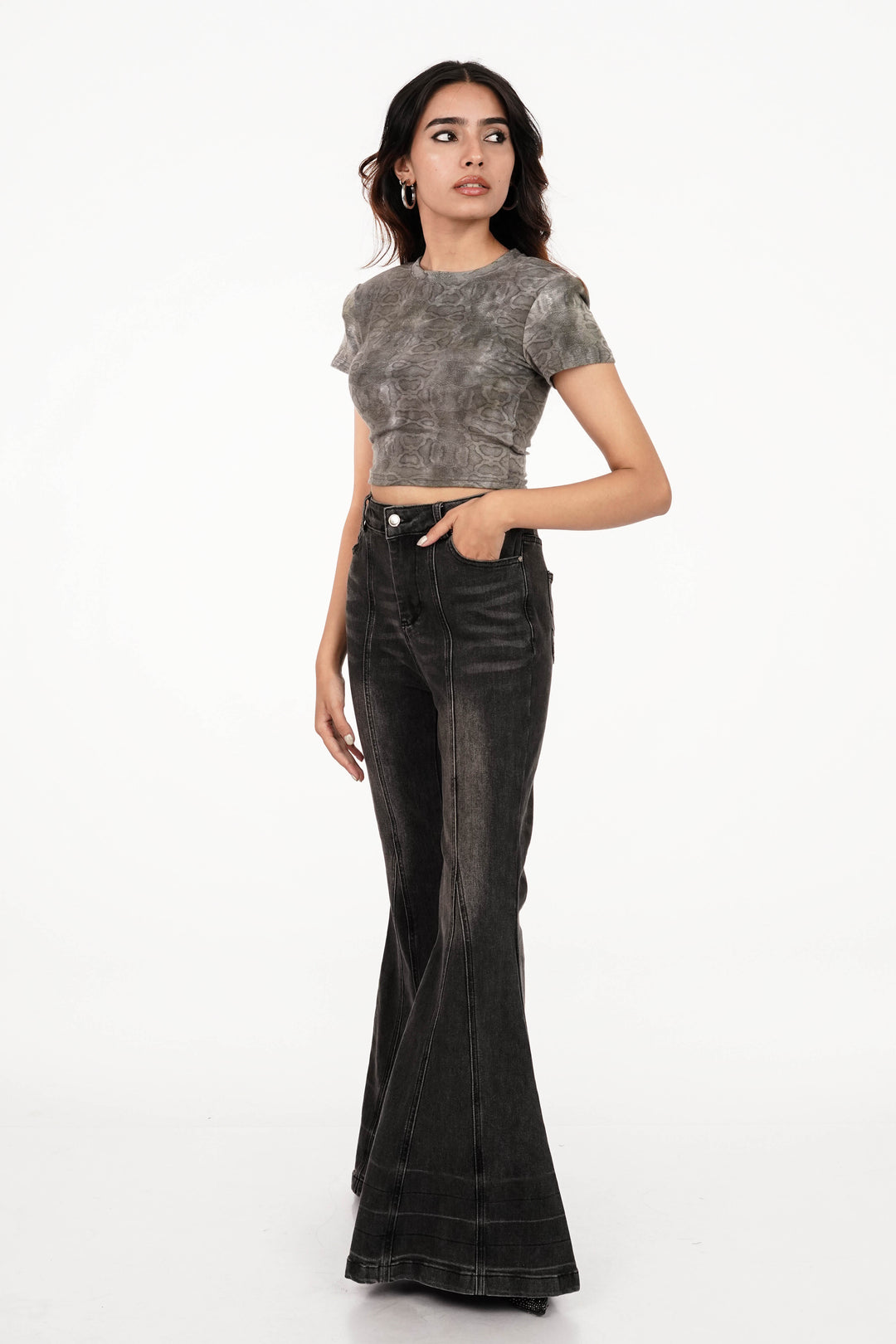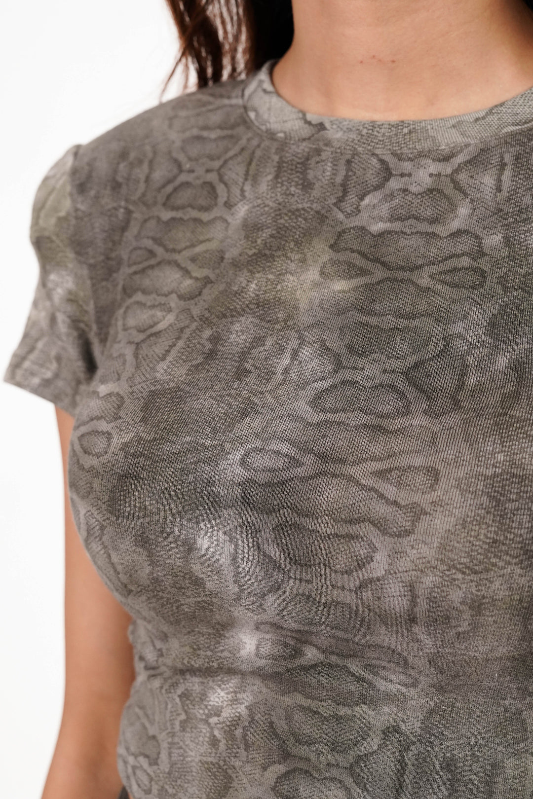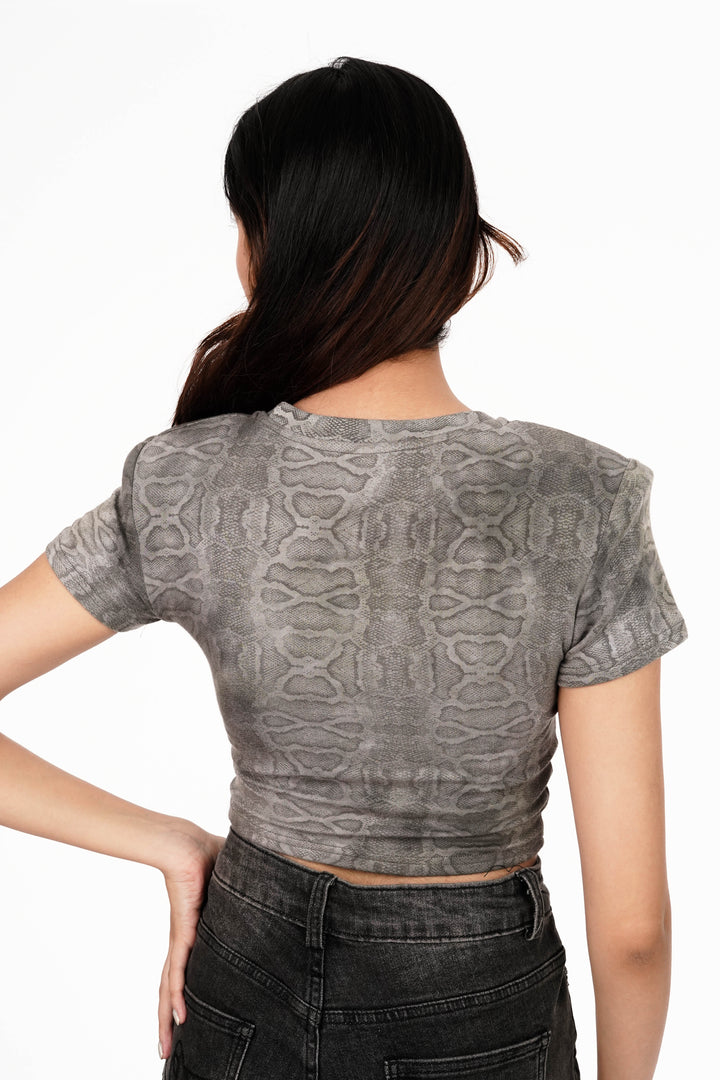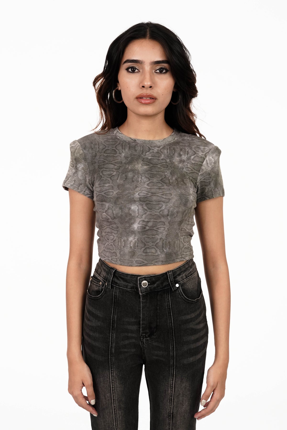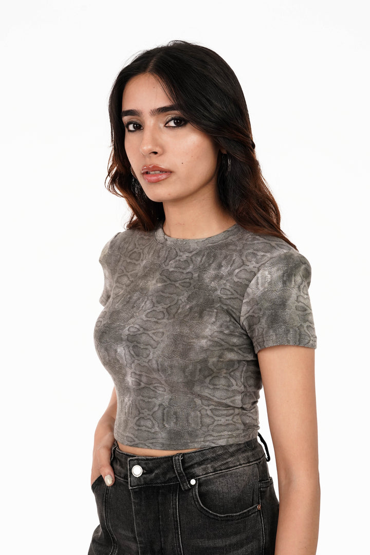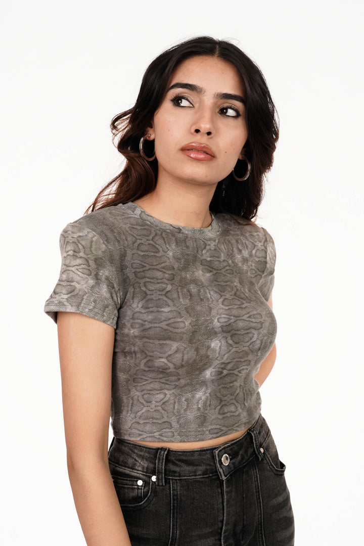 • Details: Washed gray printed, cropped, subtle shoulder structure