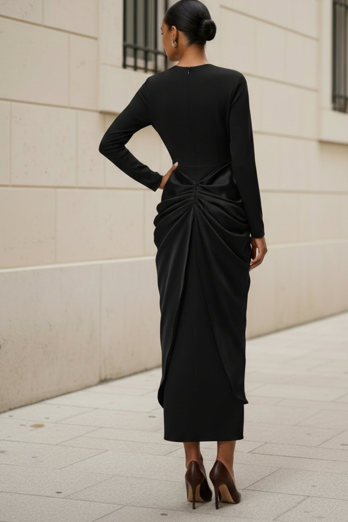 - Details: Obsidian Draped Dress with Gold brooch waist