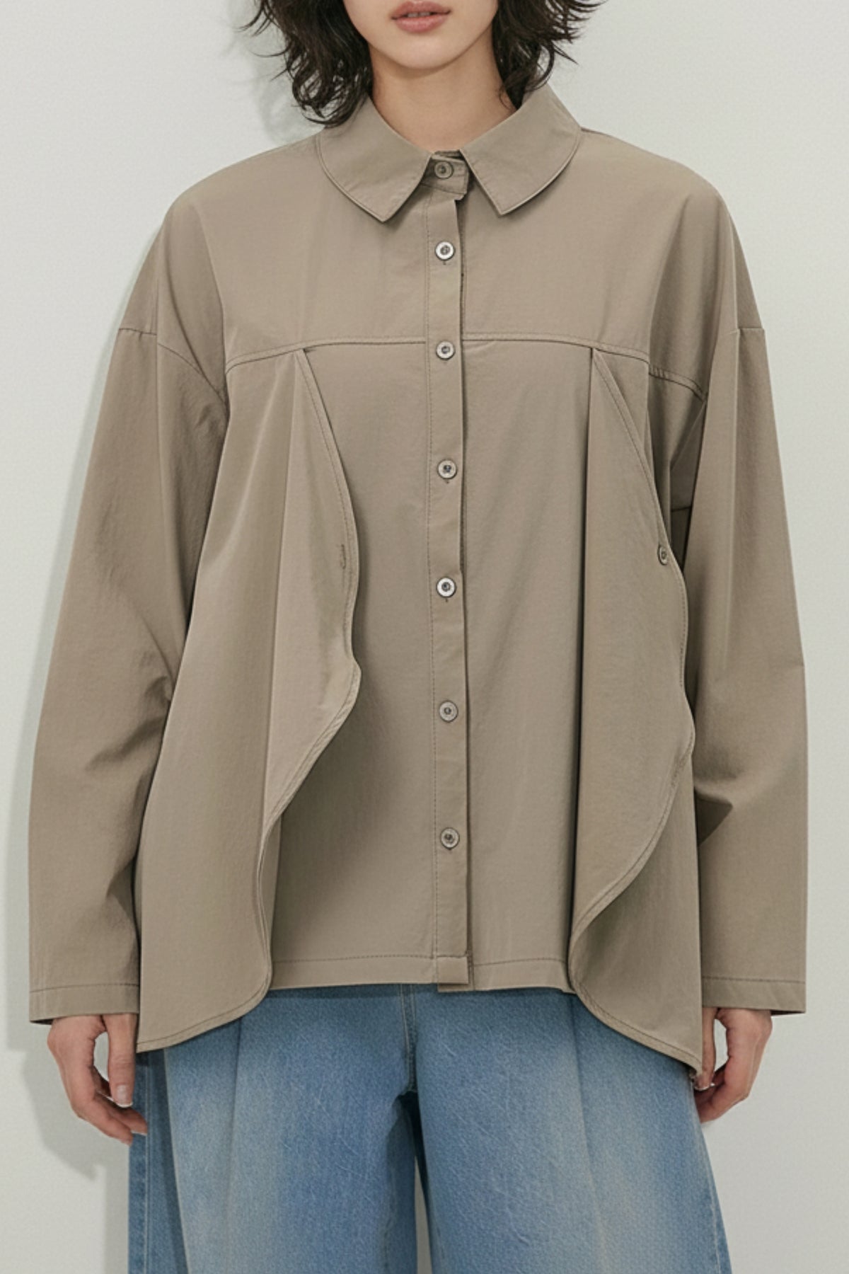 Introducing our incredibly comfortable oversized dry-fit shirt, where style meets effortless ease. This relaxed-fit piece features eye-catching double flap panels on the front that can be buttoned down or left open for a chic, laid-back vibe. With full sleeves and a buttoned front, it creates a versatile silhouette perfect for any casual outing. Discover the perfect fusion of comfort and modern design with this must-have addition to your wardrobe!
