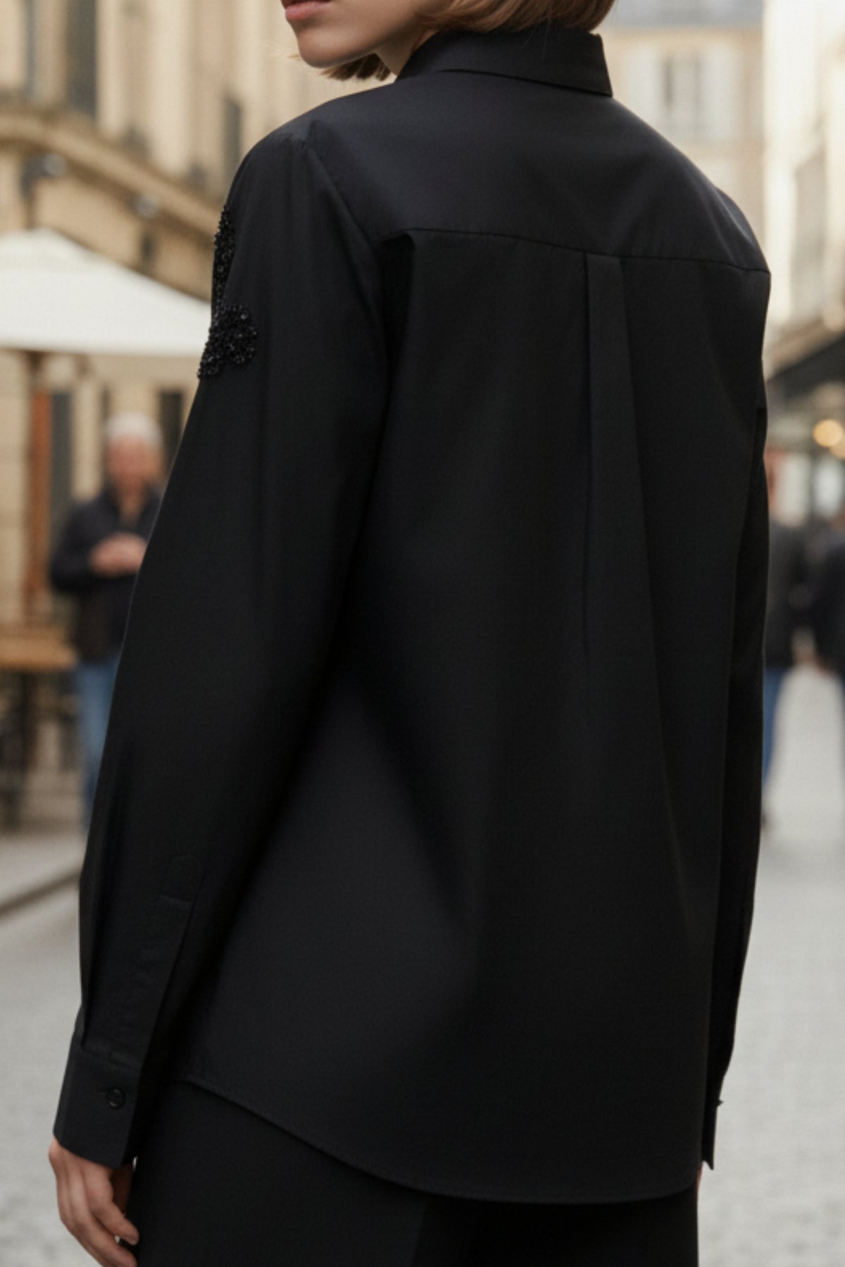 Turn heads with the Twilight Luxe Beaded Shirt, a perfect fusion of elegance and modern edge. Crafted from premium cotton blend, this black shirt is elevated with intricate floral bead and sequin embellishments that shimmer under light.