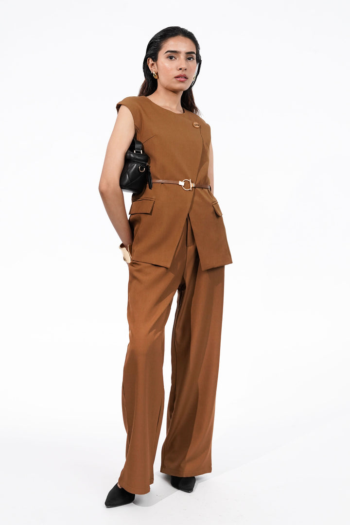 Maple Brown Asymmetric Waistcoat Co-ord Set