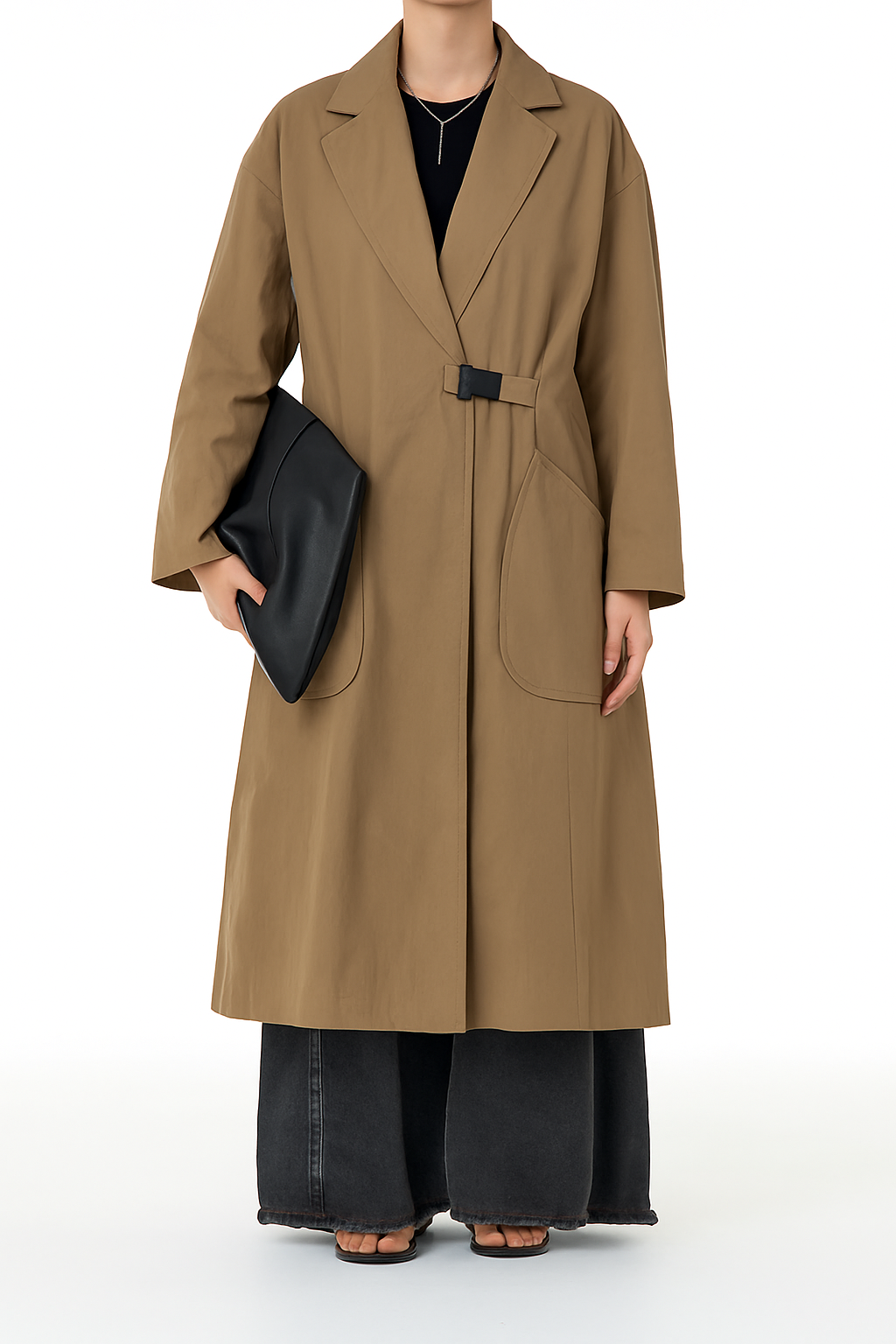 This camel coat is a fashion classic, made warm and neutral in its tone to blend with whatever outfit you may have on. This is made of high-quality materials and will do very well for both formal and casual looks. Its sleek design and versatile shade make it a wardrobe essential, pairing beautifully with a range of colors and styles that make it an investment for seasons to come.
