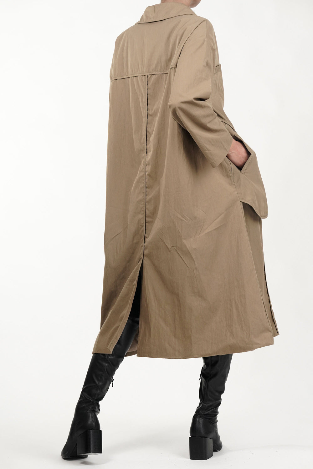 A short trench coat is a modern take on the classic, short and perfect for transitional weather. This versatile piece can be styled with high-waisted pants or skirts, adding a structure and elegance without length, as a traditional trench would. Its tailored fit adds definition to your silhouette, making it a chic layering option for any season.