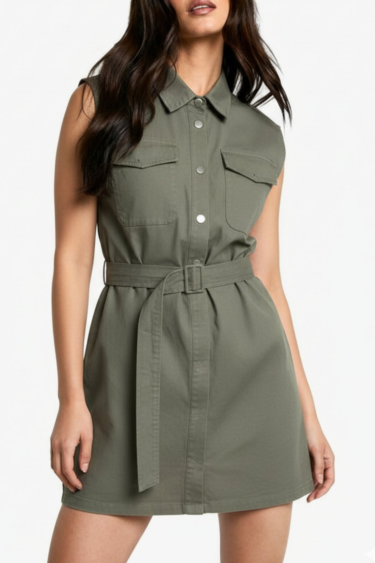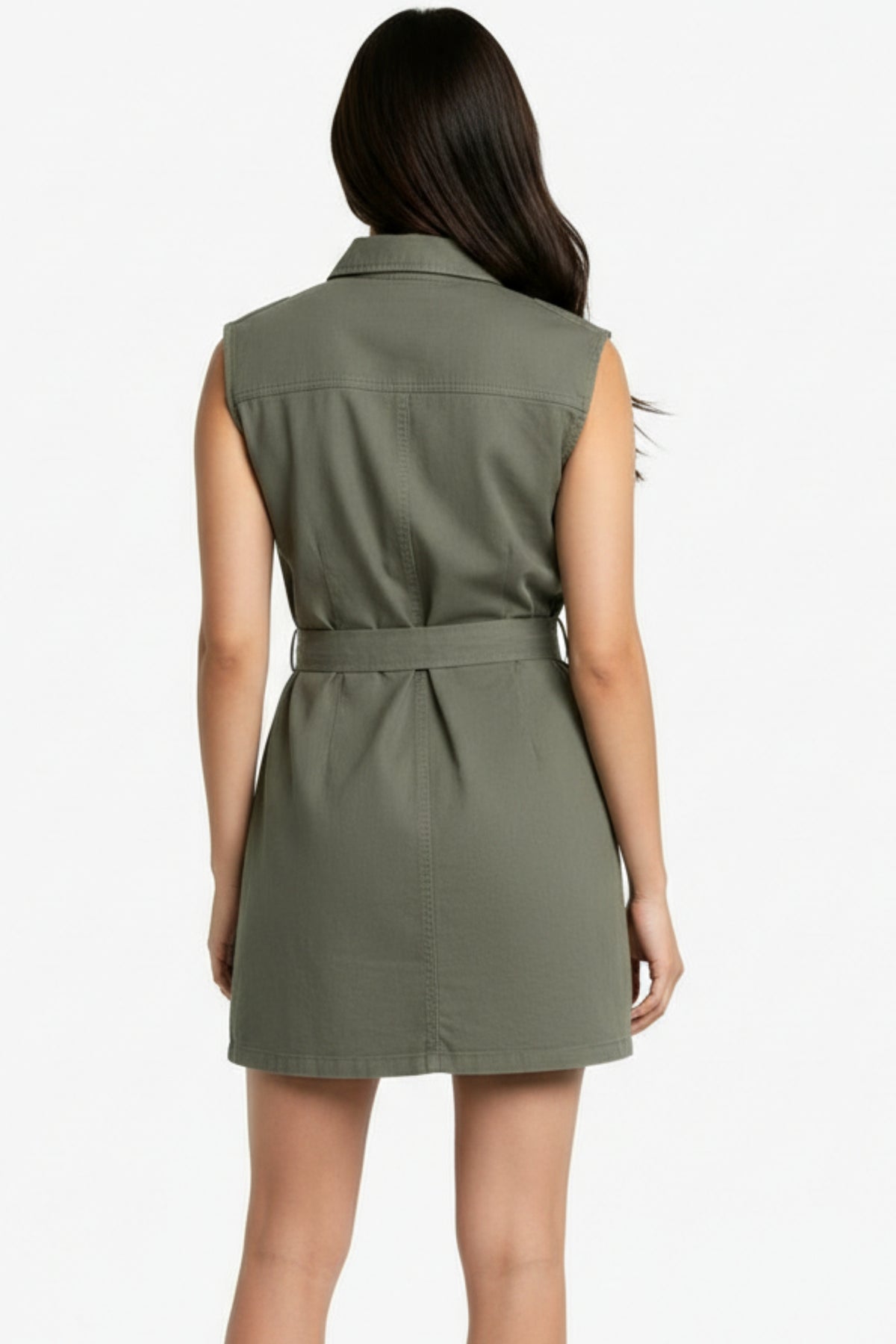 A modern utility-inspired dress designed with clean structure and everyday versatility. Crafted in a soft yet durable fabric, this sleeveless silhouette features sharp tailoring, functional details, and a cinched waist that flatters while keeping the look effortless and contemporary.
