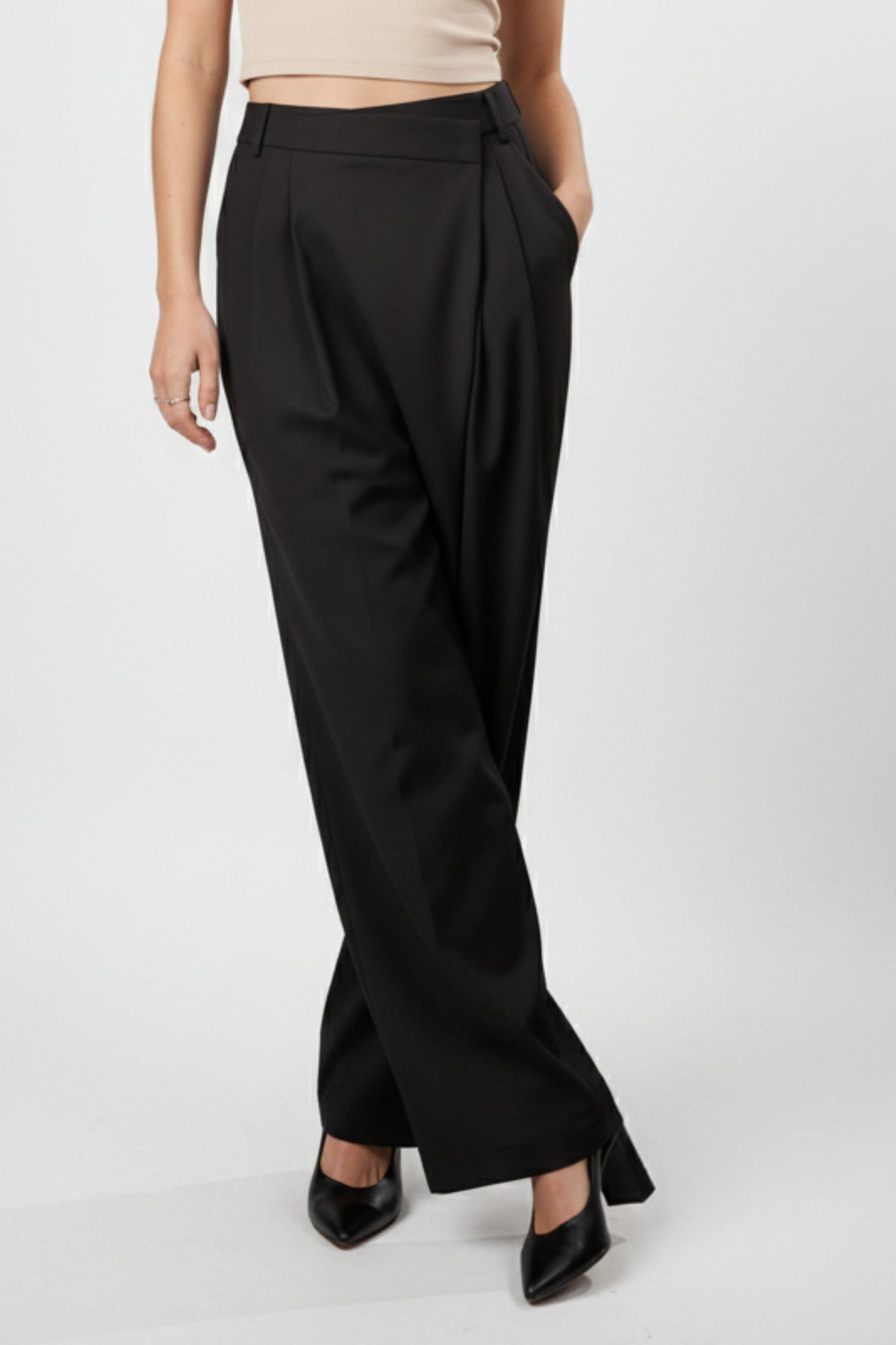 Enter a realm of unmatched sophistication with our Galactic Black Asymmetrical Pants. Crafted with a tailored and wide-leg silhouette, they exude contemporary elegance. Enhanced by practical side pockets, these pants seamlessly combine style and versatility, guaranteeing a polished and refined appearance that distinguishes you from the rest.