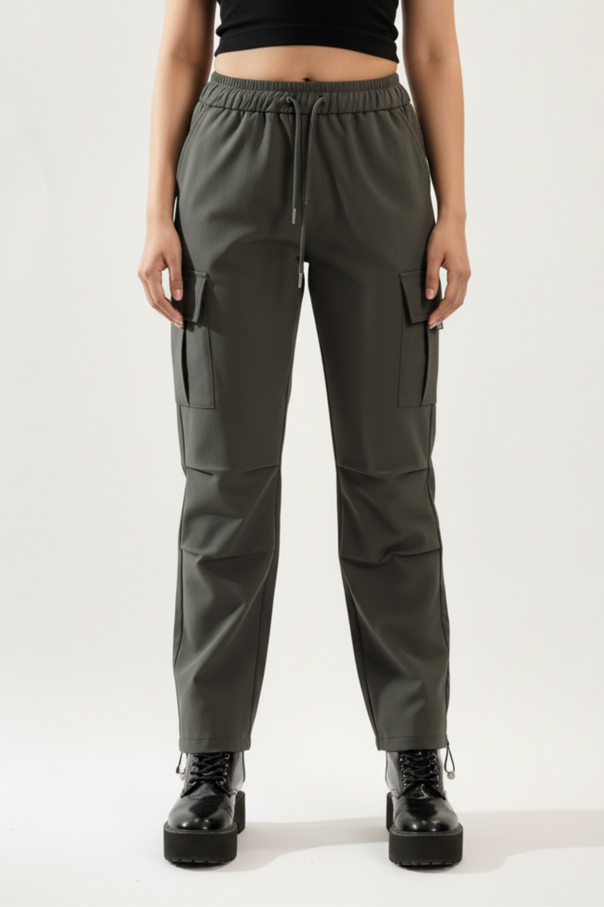 Experience comfort and style in our versatile Graphite Utility Cargos. The elasticated waist with a drawstring ensures a tailored fit, while side and cargo flap pockets add functionality. The drawstring at the pant opening allows for a customizable look. Elevated by knee detailing, these trousers seamlessly blend casual and chic, making them a wardrobe essential for a modern, dynamic aesthetic.