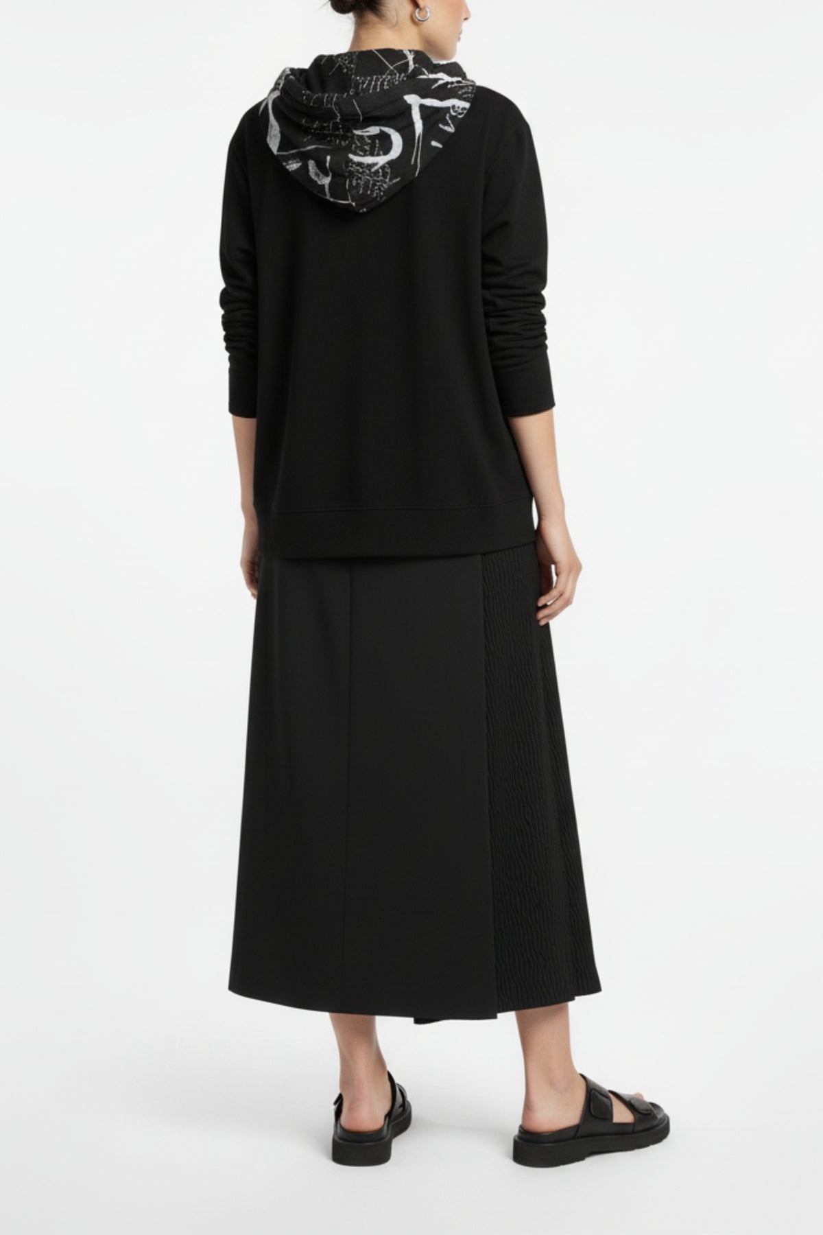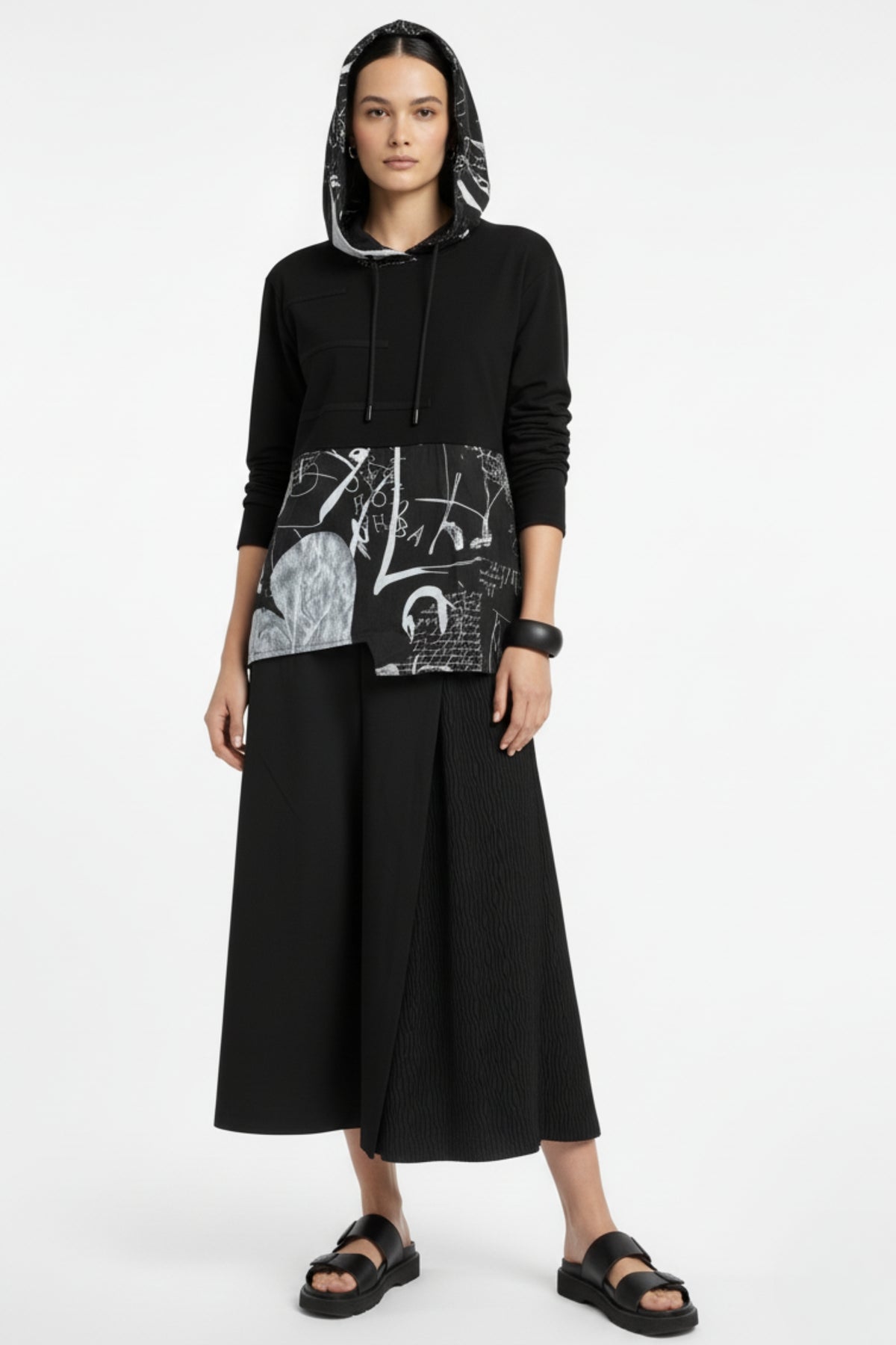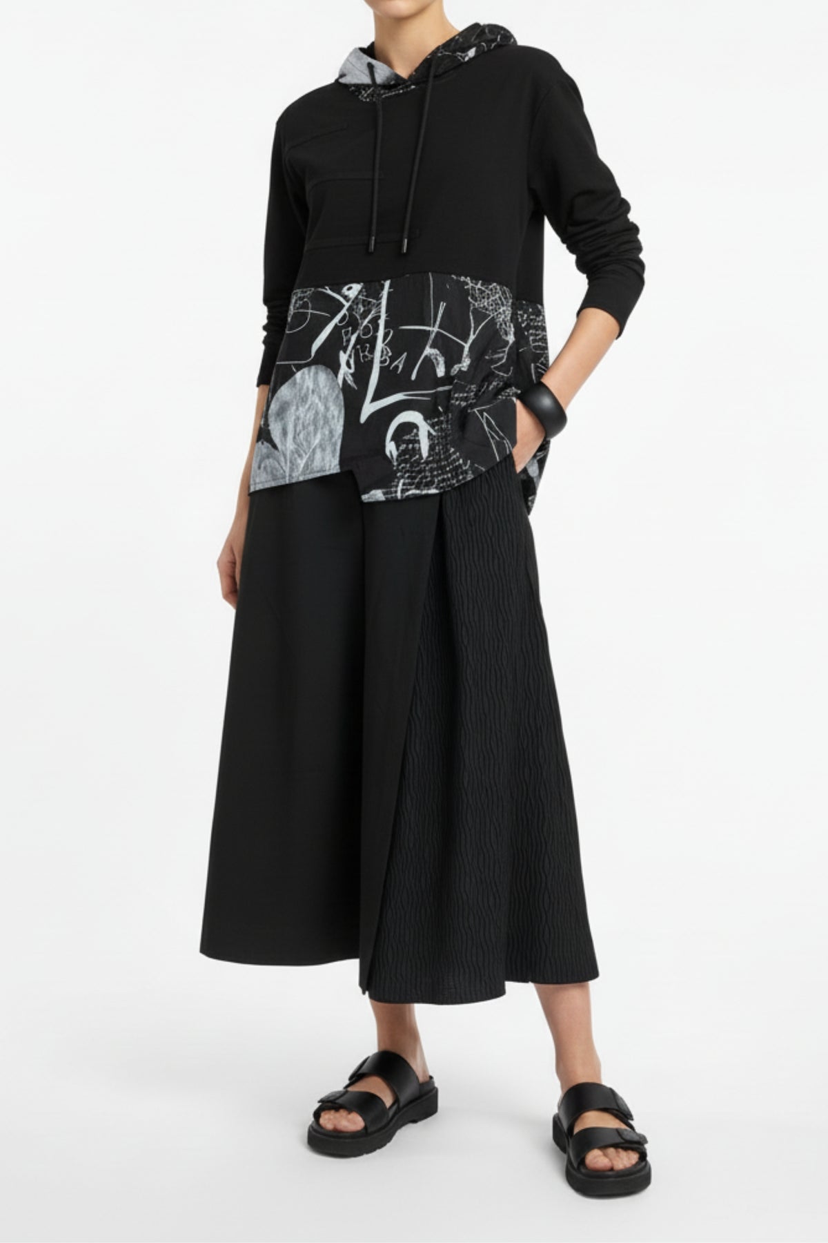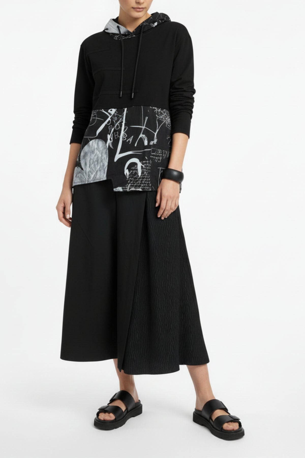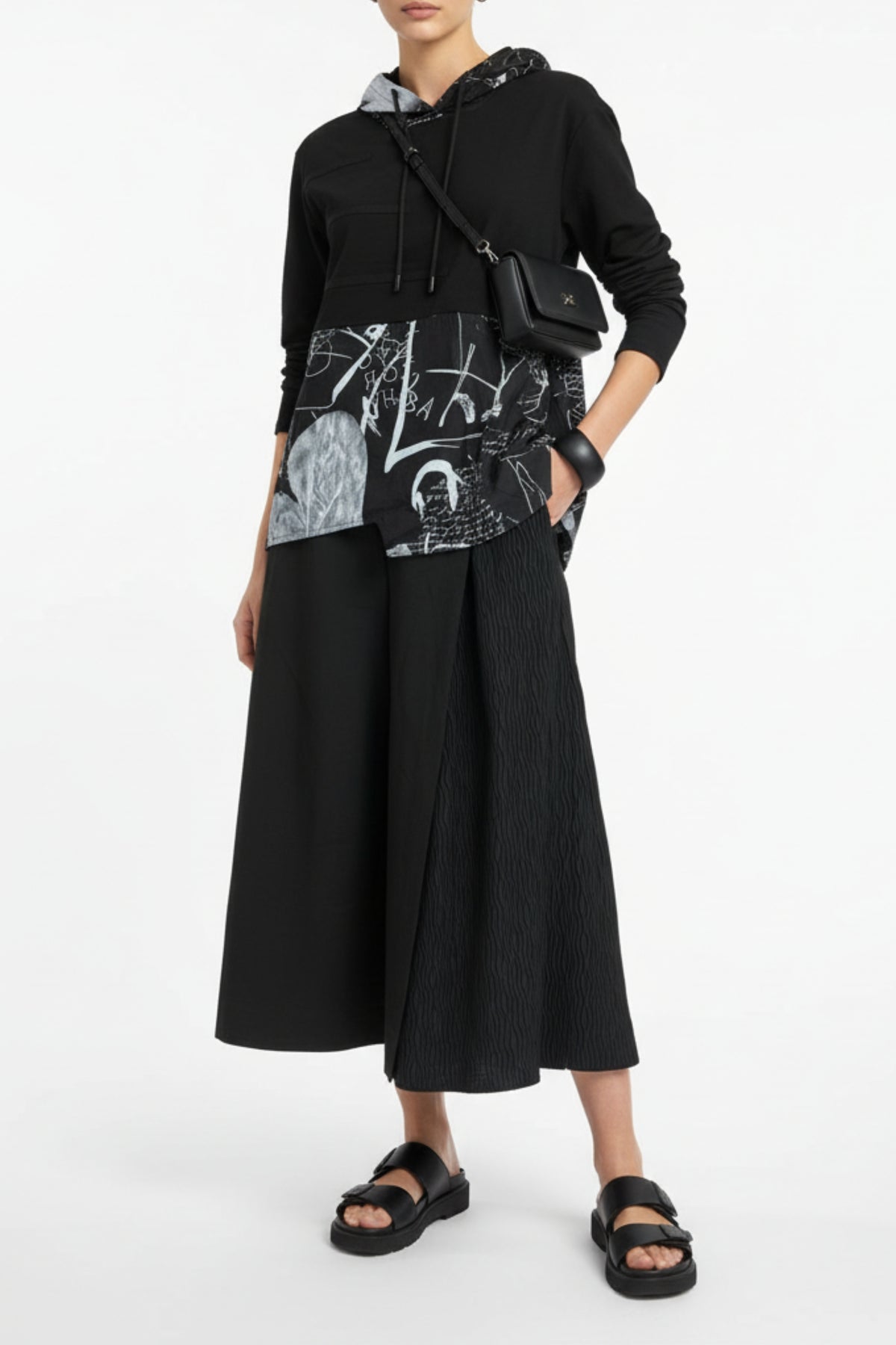 - Details: Black Graphic Hoodie with pleated detail fabric Culottes