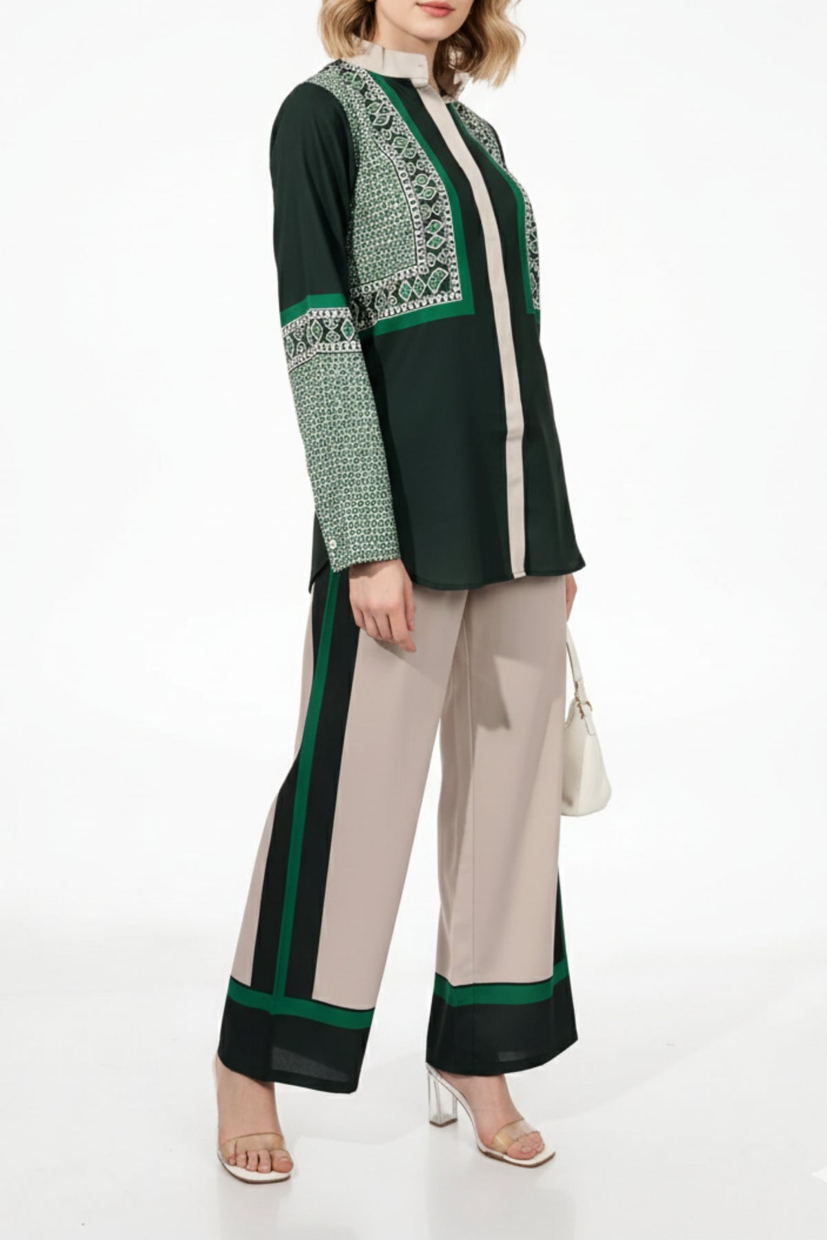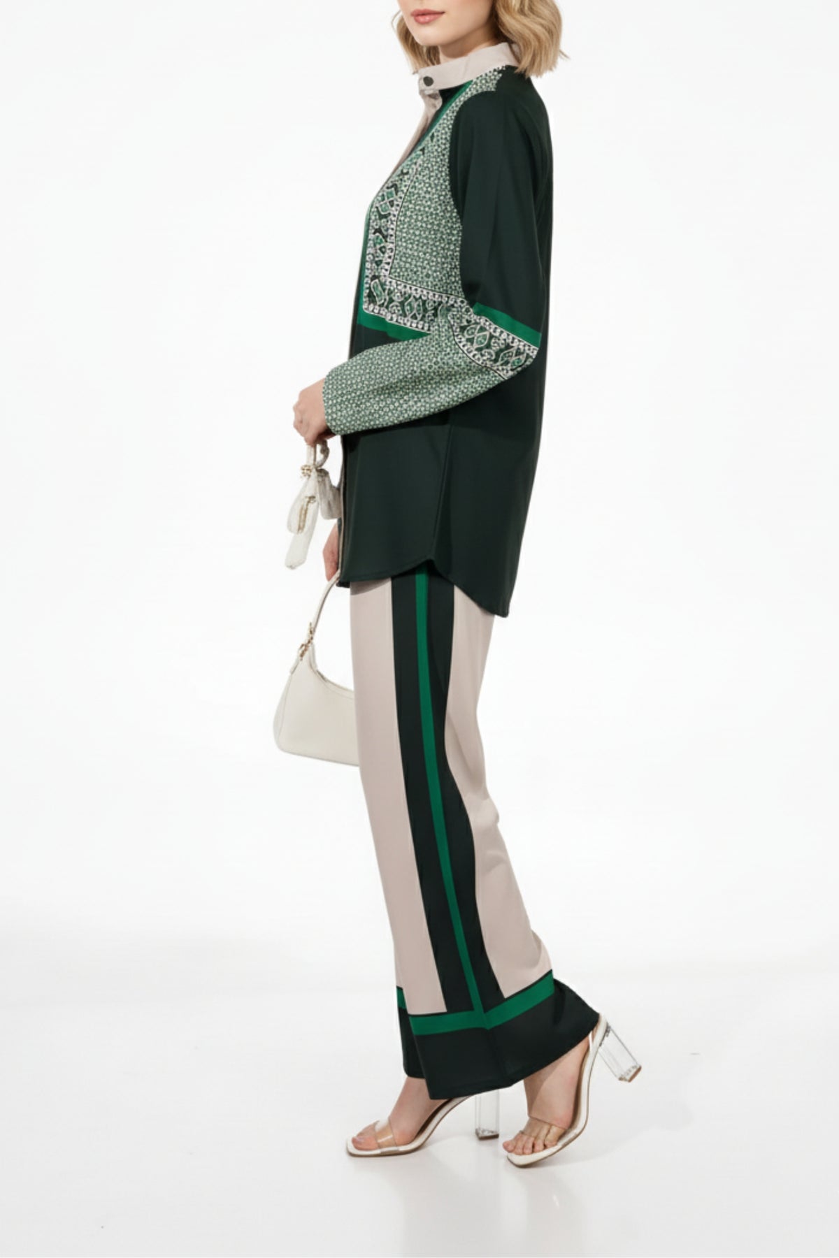 Unleash enchanting vibes with the Genie in a Bottle coord set. In rich bottle green and off-white, the set features a stylish shirt paired with straight pants for a magical fusion of elegance and comfort. Grant yourself a fashion wish.