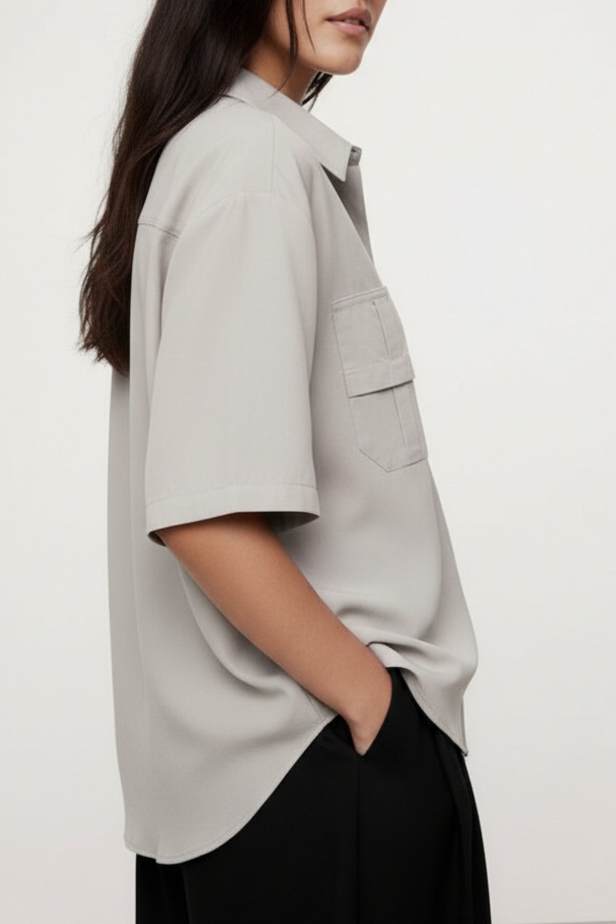 Introducing our "Neutral Shade Summer Shirt," a harmonious blend of timeless style and seasonal comfort. With its half sleeves, two patch pockets, and rounded hem, it exudes effortless elegance and casual sophistication. A versatile essential for every summer occasion.