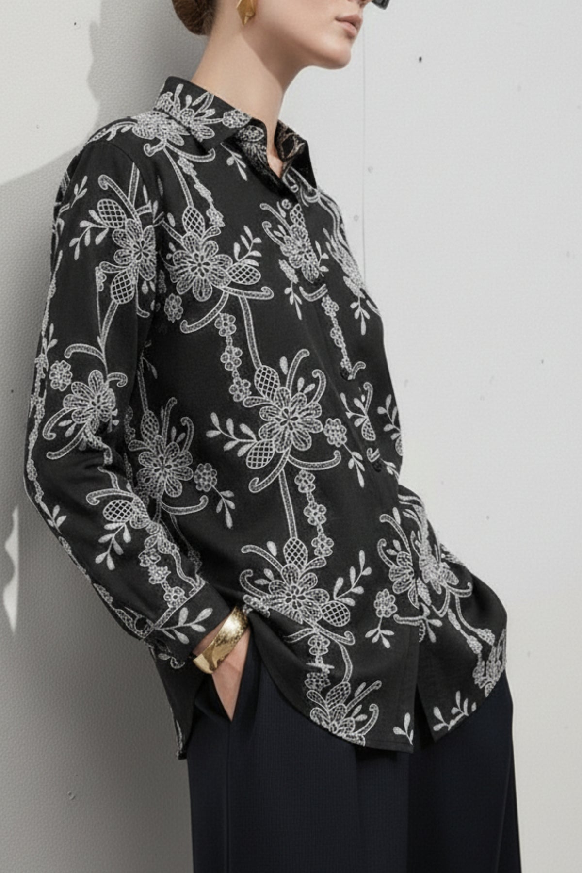 • Details: Black embroidered shirt with stones