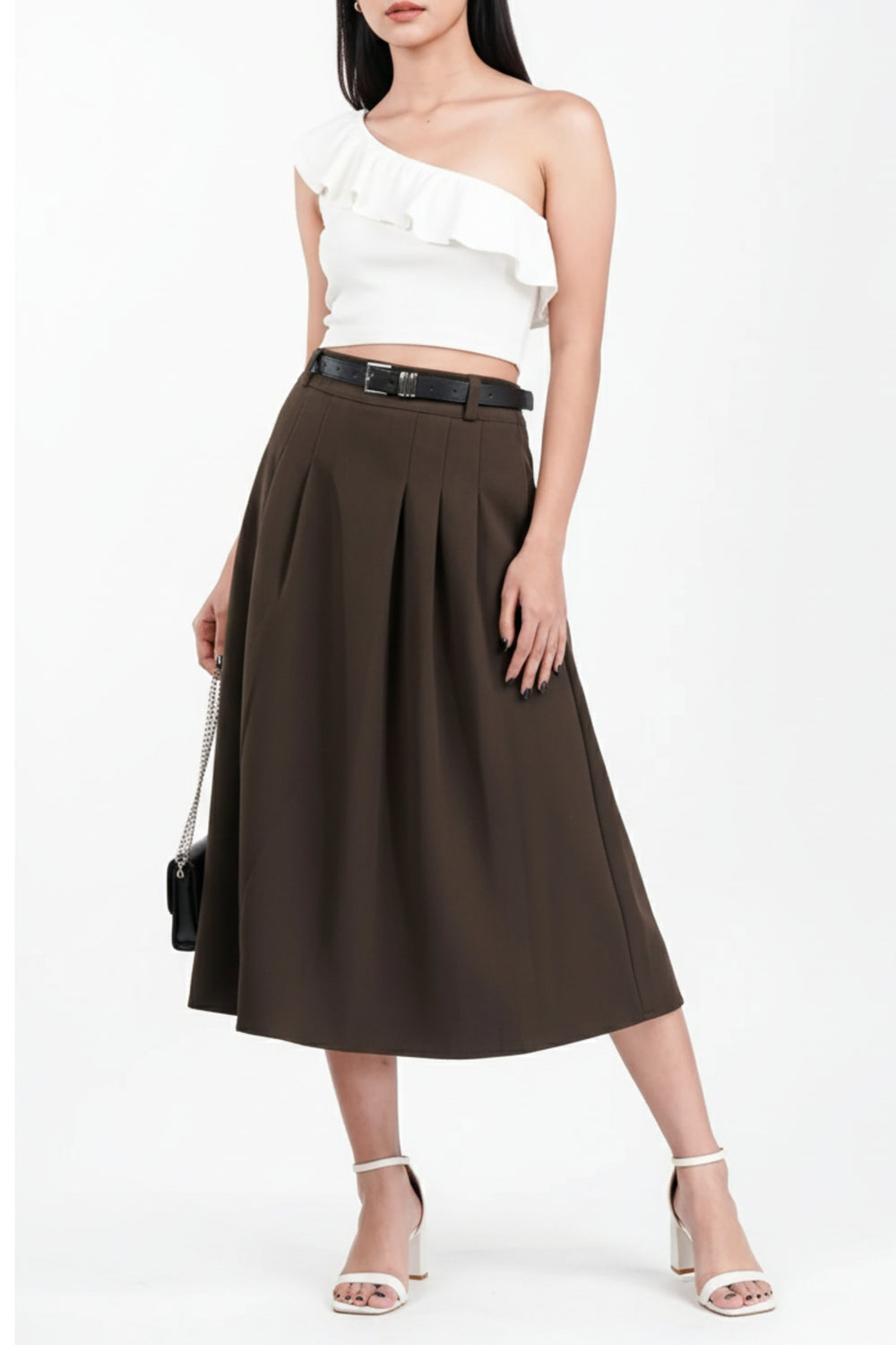 Flared skirts lend a playful and dynamic vibe to the outfit, and because of this delicate proportion - cinched waist and flared-out skirt - this shape easily becomes a signature of many looks. This funny design not only makes it cute but also creates an illusion of movement. The flared skirts, of course, are available in several different lengths and match the season depending on your tastes. Apart from that, it can be flattering to any body type.