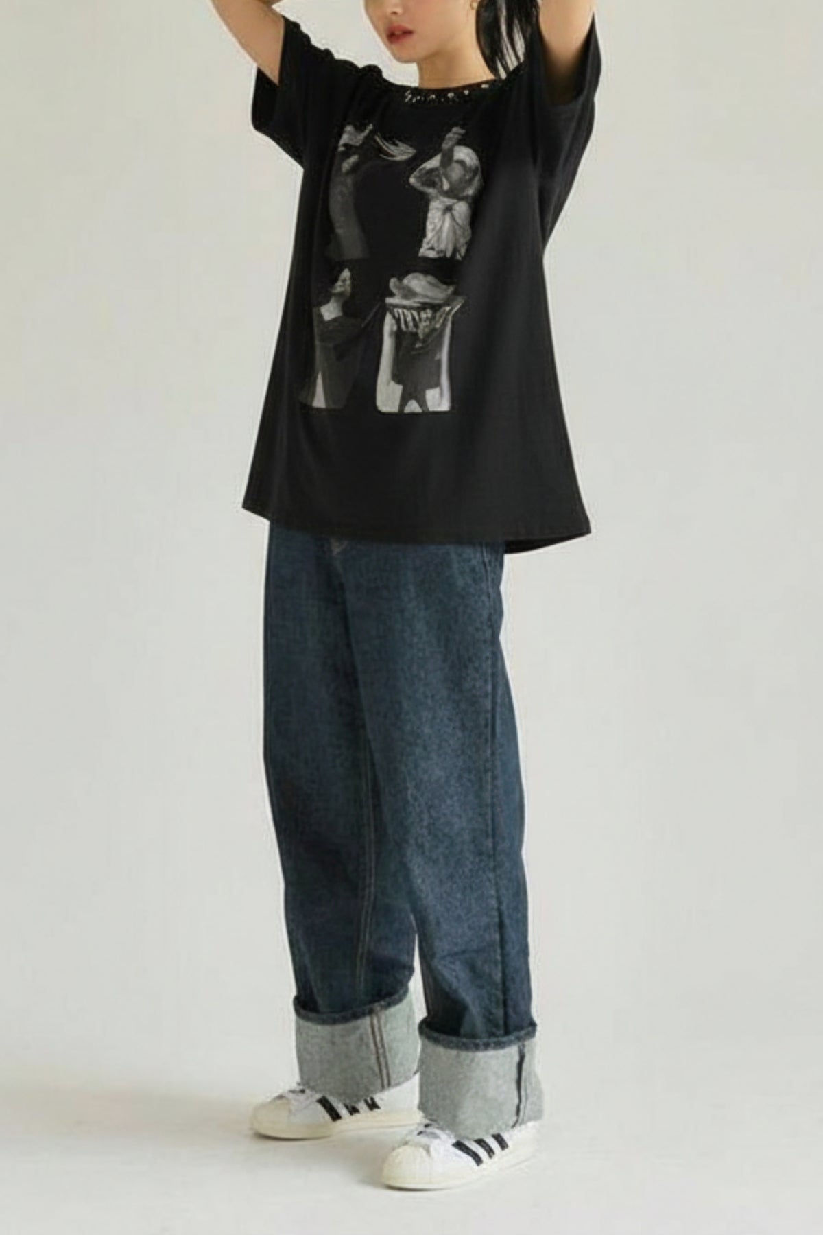 Make an effortless statement with the Portrait Black Oversized Tee—where comfort meets unapologetic edge. Featuring a striking graphic print and a laid-back silhouette, this bold piece brings an artistic twist to everyday casuals.