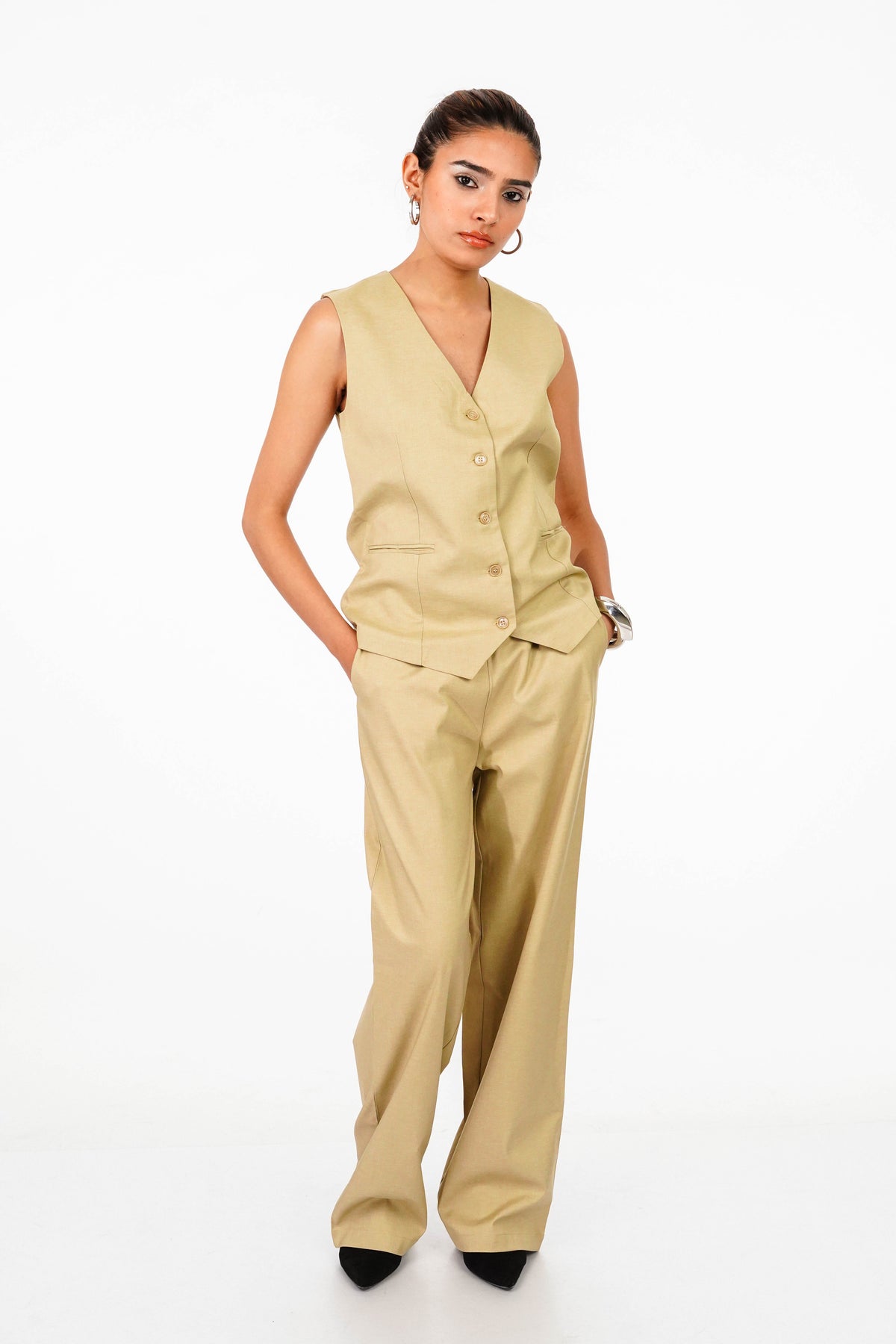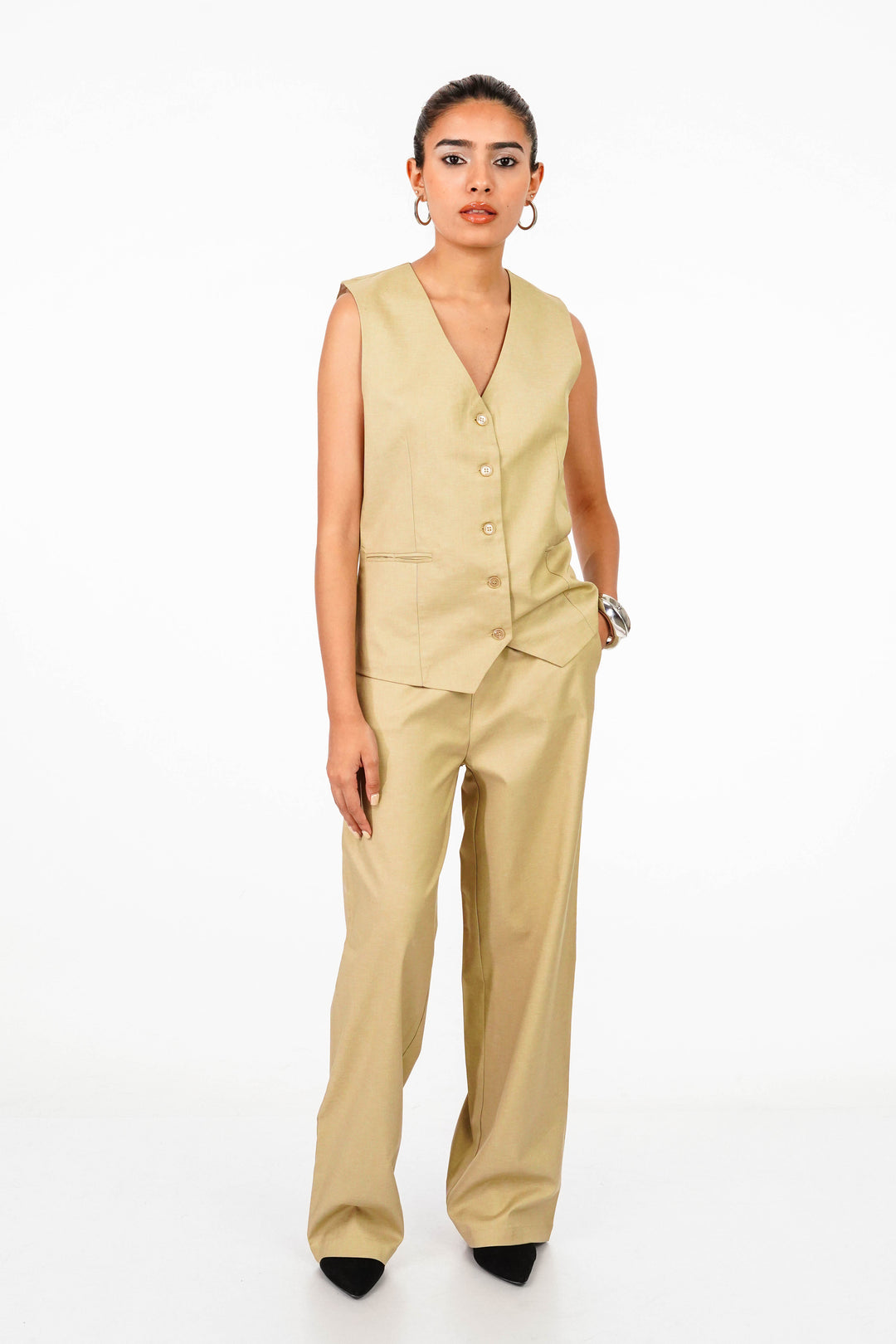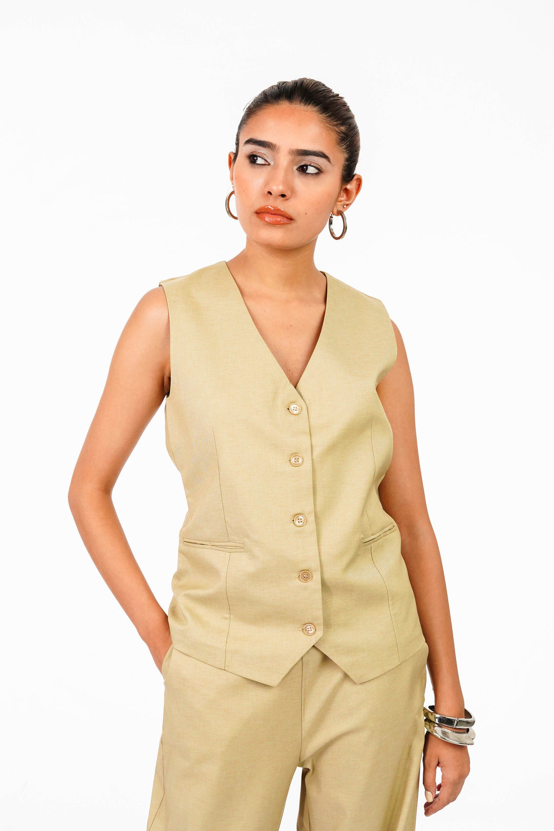 - Details: Beige Waistcoat and Pant Coord Set