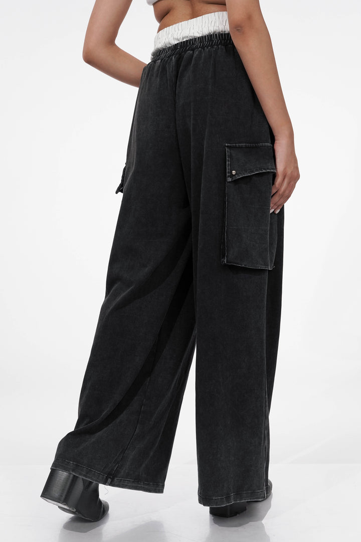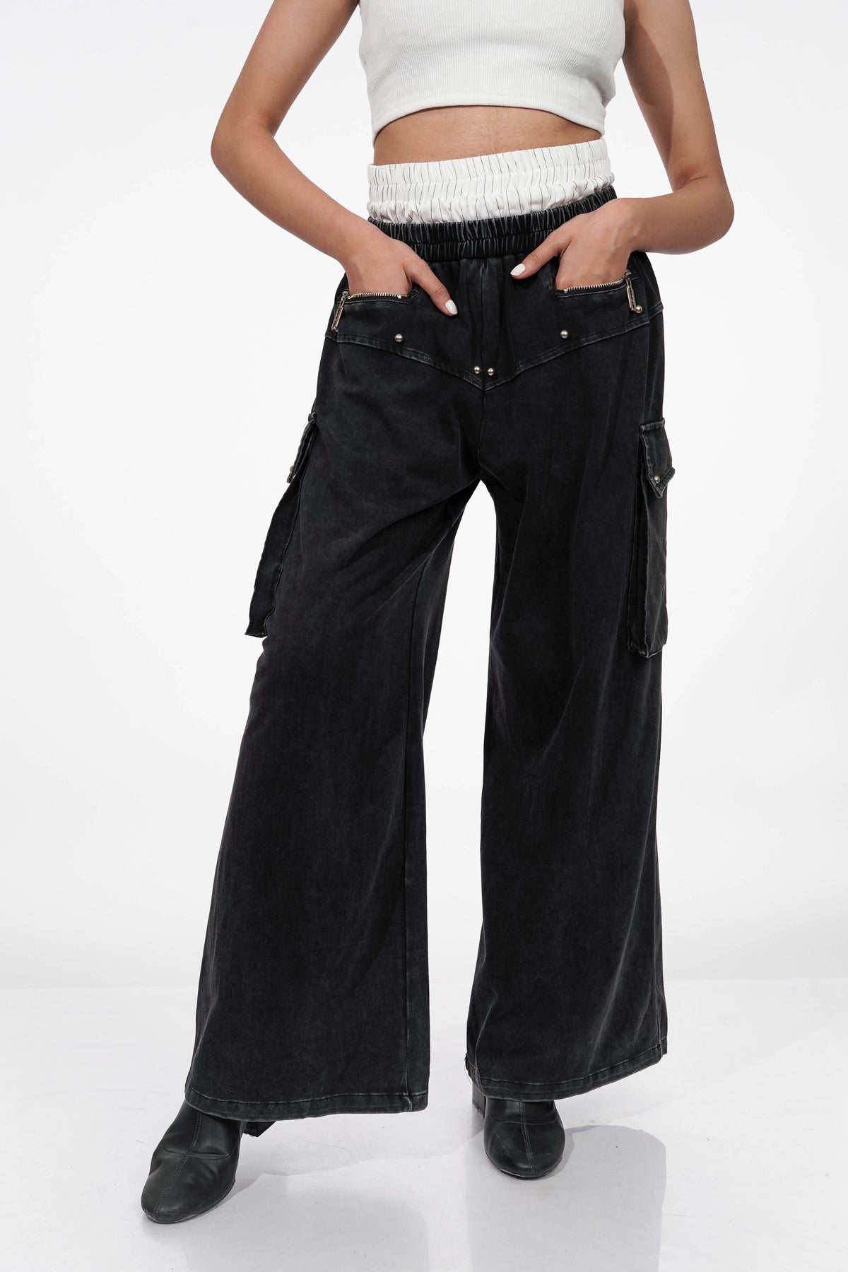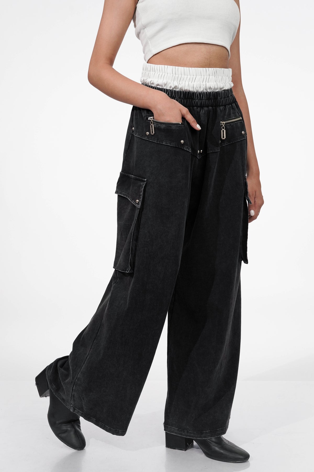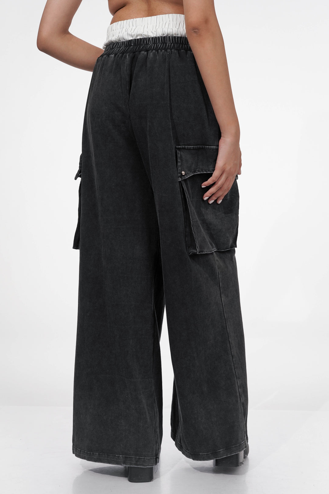 Meet your new street-style essential – the Charcoal Washed Cargo Pants. Designed with a bold contrast waistband and a deep charcoal wash, these cargo pants bring utility and fashion together effortlessly. Featuring multiple flap pockets, statement zipper details, and a relaxed wide-leg silhouette, they offer both edge and comfort.