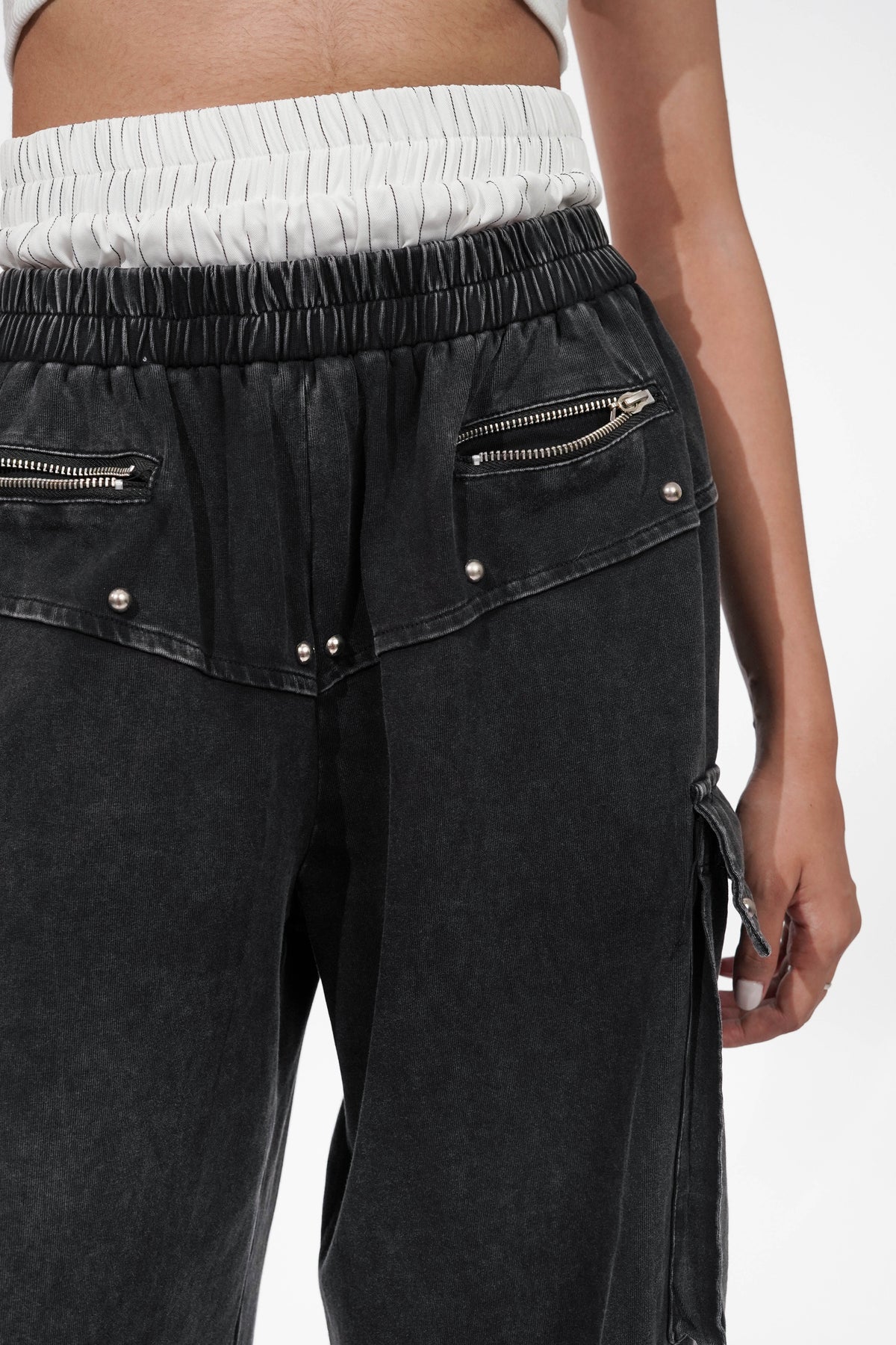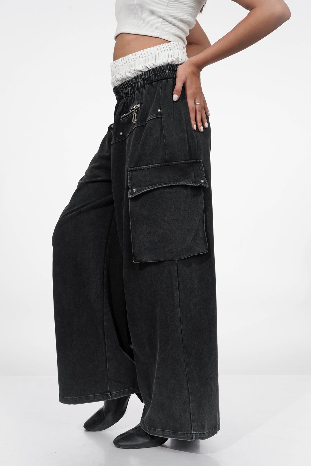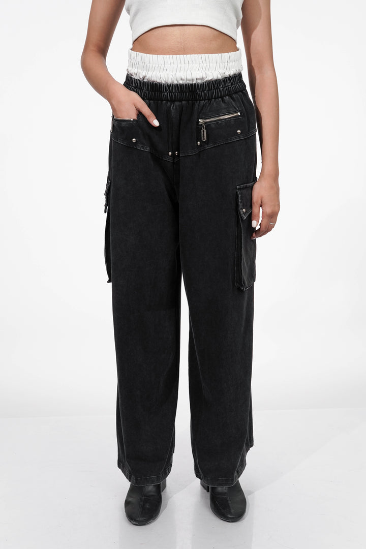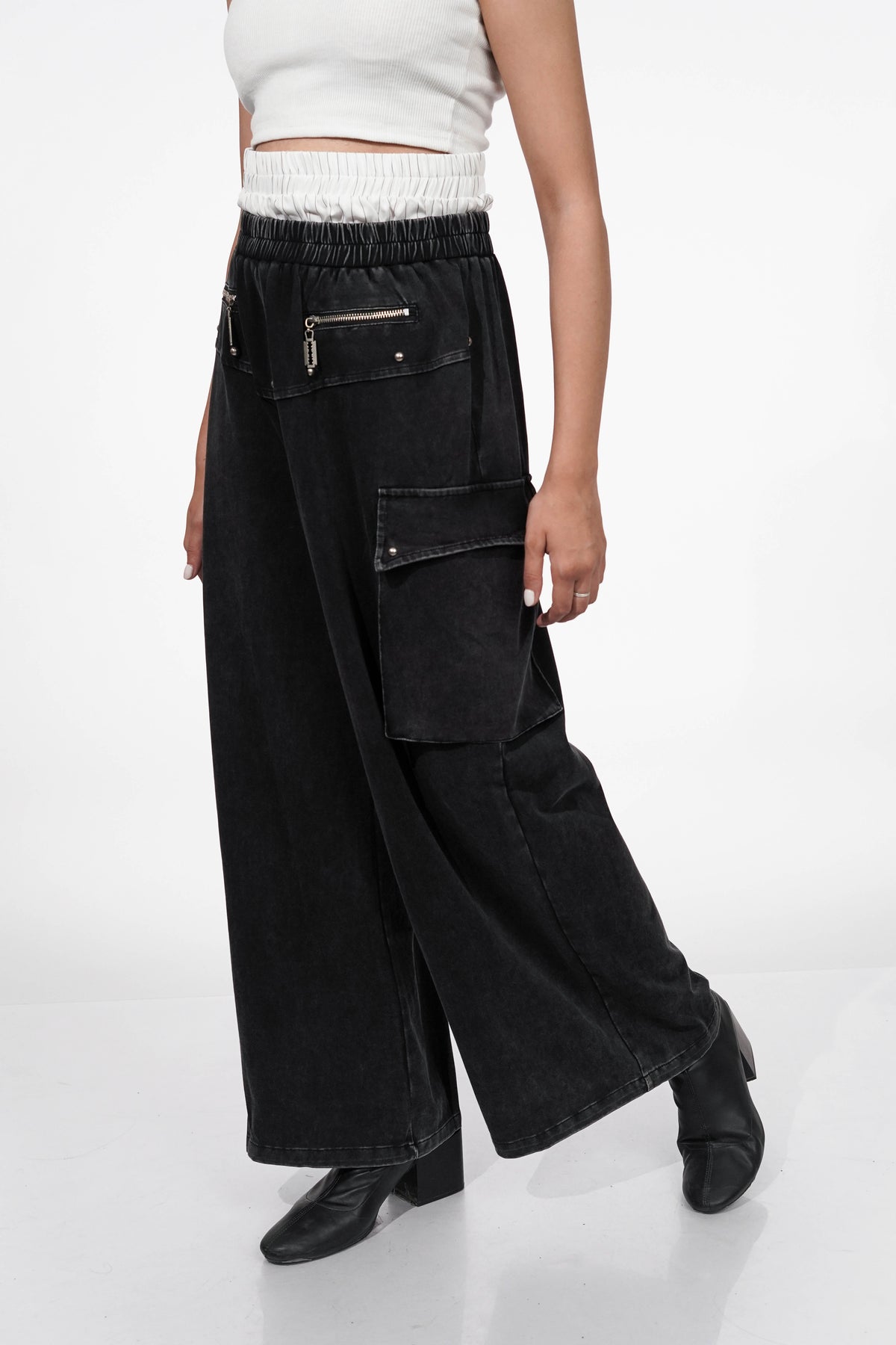 Meet your new street-style essential – the Charcoal Washed Cargo Pants. Designed with a bold contrast waistband and a deep charcoal wash, these cargo pants bring utility and fashion together effortlessly. Featuring multiple flap pockets, statement zipper details, and a relaxed wide-leg silhouette, they offer both edge and comfort.